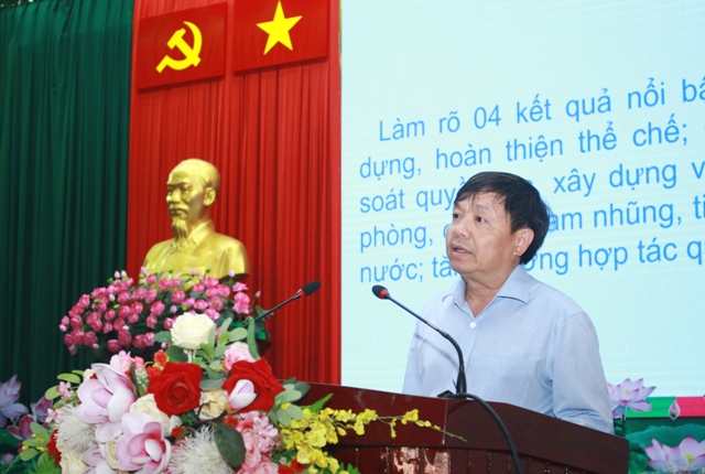 Tại Hội nghị, các đại biểu được nghe Thượng tướng, Phó Giáo sư, Tiến sĩ Nguyễn Văn Thành - Phó Chủ tịch chuyên trách Hội đồng Lý luận Trung ương báo cáo những nội dung cốt lõi của tác phẩm “Kiên quyết, kiên trì đấu tranh phòng, chống tham nhũng, tiêu cực, góp phần xây dựng Đảng và Nhà nước ta ngày càng trong sạch, vững mạnh” của đồng chí Tổng Bí thư Nguyễn Phú Trọng. Đồng thời, đồng chí Phan Văn Thắng - Phó Bí thư Thường trực Tỉnh ủy, Chủ tịch Hội đồng nhân dân tỉnh triển khai Kế hoạch số 159-KH/TU ngày 19/4/2023 của Ban Thường vụ Tỉnh ủy về tổ chức đợt sinh hoạt chính trị, tư tưởng sâu rộng về nội dung tác phẩm “Kiên quyết, kiên trì đấu tranh phòng, chống tham nhũng, tiêu cực, góp phần xây dựng Đảng và Nhà nước ta ngày càng trong sạch, vững mạnh” của đồng chí Tổng Bí thư Nguyễn Phú Trọng và gợi ý nội dung thảo luận.