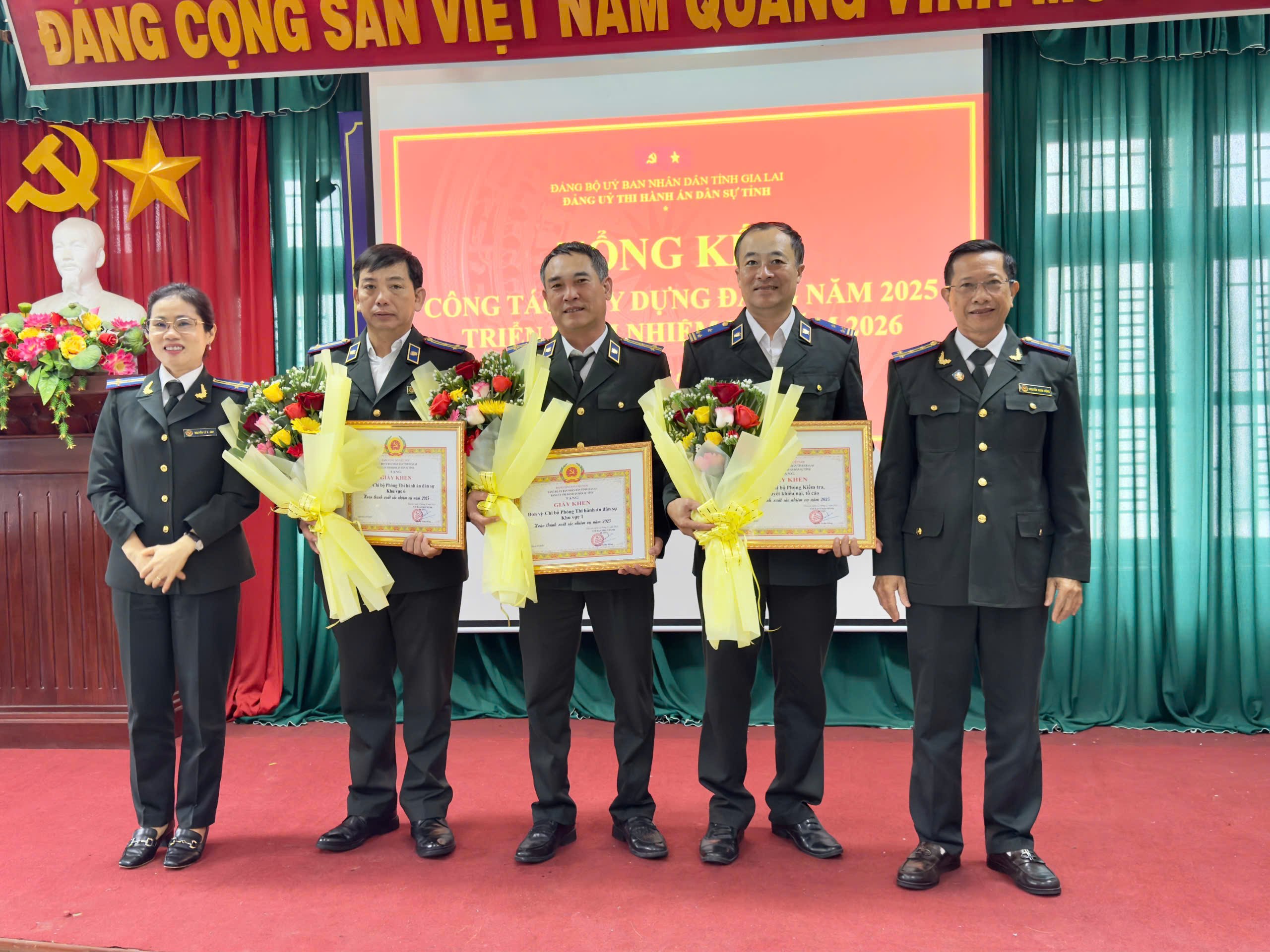 Ngày 25 tháng 12 năm 2025, Đảng bộ Thi hành án dân sự tỉnh Gia Lai tổ chức Hội nghị tổng kết công tác xây dựng Đảng năm 2025, triển khai nhiệm vụ, giải pháp trọng tâm năm 2025. Đồng chí Nguyễn Xuân Hồng, Bí thư Đảng ủy, Trưởng Thi hành án dân sự tỉnh; đồng chí Võ Công Hoàng, Phó Bí thư Đảng ủy, Phó trưởng Thi hành án dân sự tỉnh chủ trì Hội nghị. Tham dự hội nghị, có đồng chí Nguyễn Quang, Phó Chánh văn phòng Đảng ủy UBND tỉnh; các đồng chí trong Ban Thường vụ, Ban Chấp hành Đảng bộ; Bí thư, Phó Bí thư, Chi ủy viên các Chi bộ trực thuộc Đảng ủy Thi hành án dân sự tỉnh; Bí thư Đoàn Thanh niên Thi hành án dân sự tỉnh.