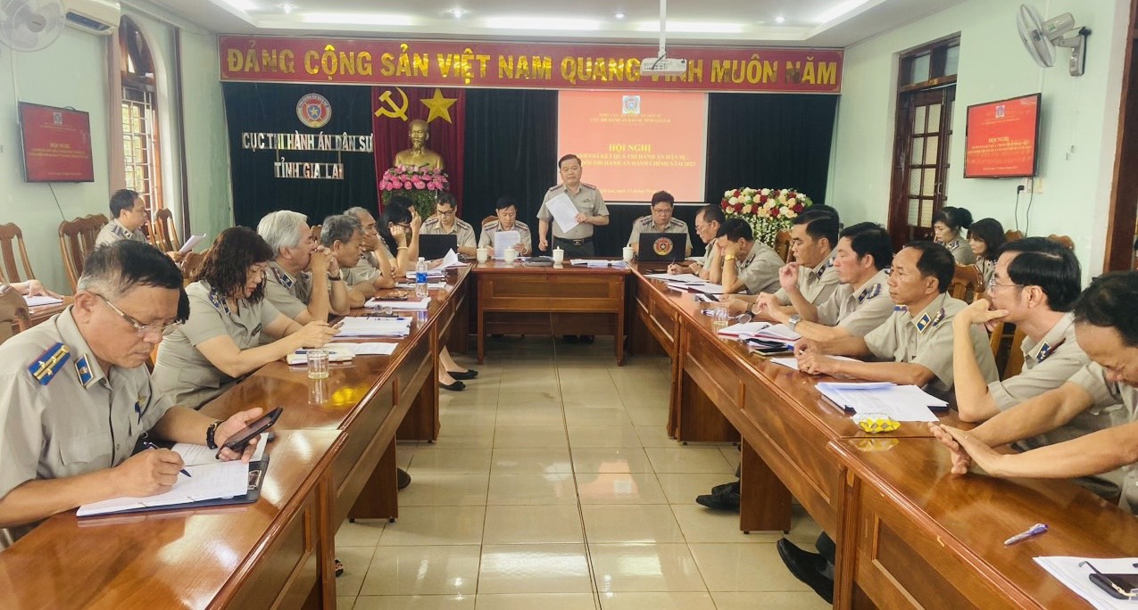 CỤC THI HÀNH ÁN DÂN SỰ TỈNH GIA LAI TỔ CHỨC HỘI NGHỊ ĐÁNH GIÁ KẾT QUẢ THI HÀNH ÁN DÂN SỰ, THEO DÕI THI HÀNH ÁN HÀNH CHÍNH NĂM 2023