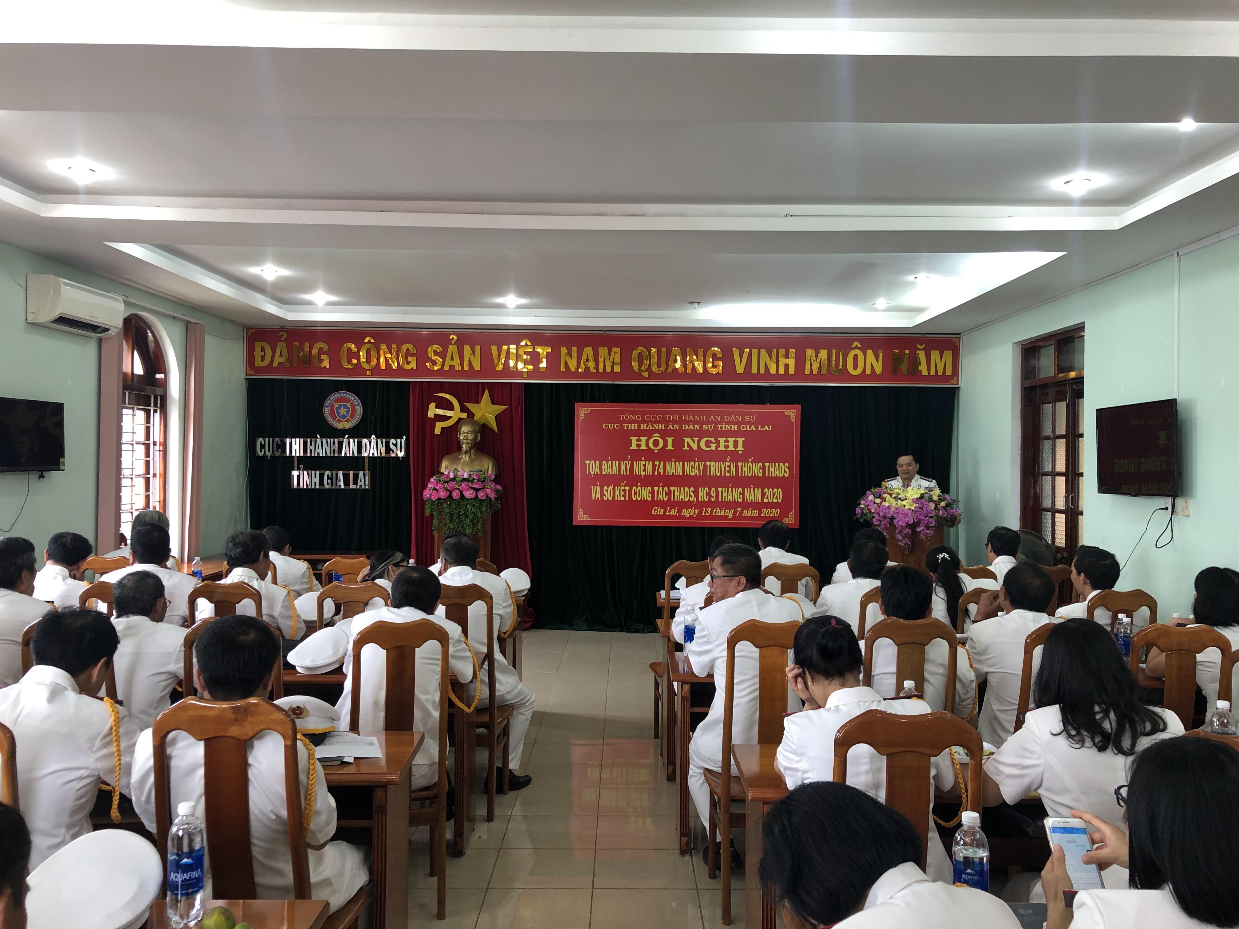 Thực hiện Kế hoạch số 2150/KH-TCTHADS ngày 01/7/2020 của Tổng cục Thi hành án dân sự về hoạt động kỷ niệm 75 năm Ngành Tư pháp Việt Nam (28/8/1945-28/8/2020), 74 năm Ngày truyền thống Thi hành án dân sự (19/7/1946-19/7/2020) và Đại hội thi đua yêu nước lần thứ V trong toàn Hệ thống thi hành án dân sự; Kế hoạch số 853/KH-CTHADS ngày 08/7/2020 của Cục Thi hành án dân sự tỉnh Gia Lai về việc tọa đàm kỷ niệm 74 năm ngày truyền thống thi hành án dân sự và tổ chức sơ kết công tác thi hành án dân sự, thi hành án hành chính 9 tháng năm 2020.