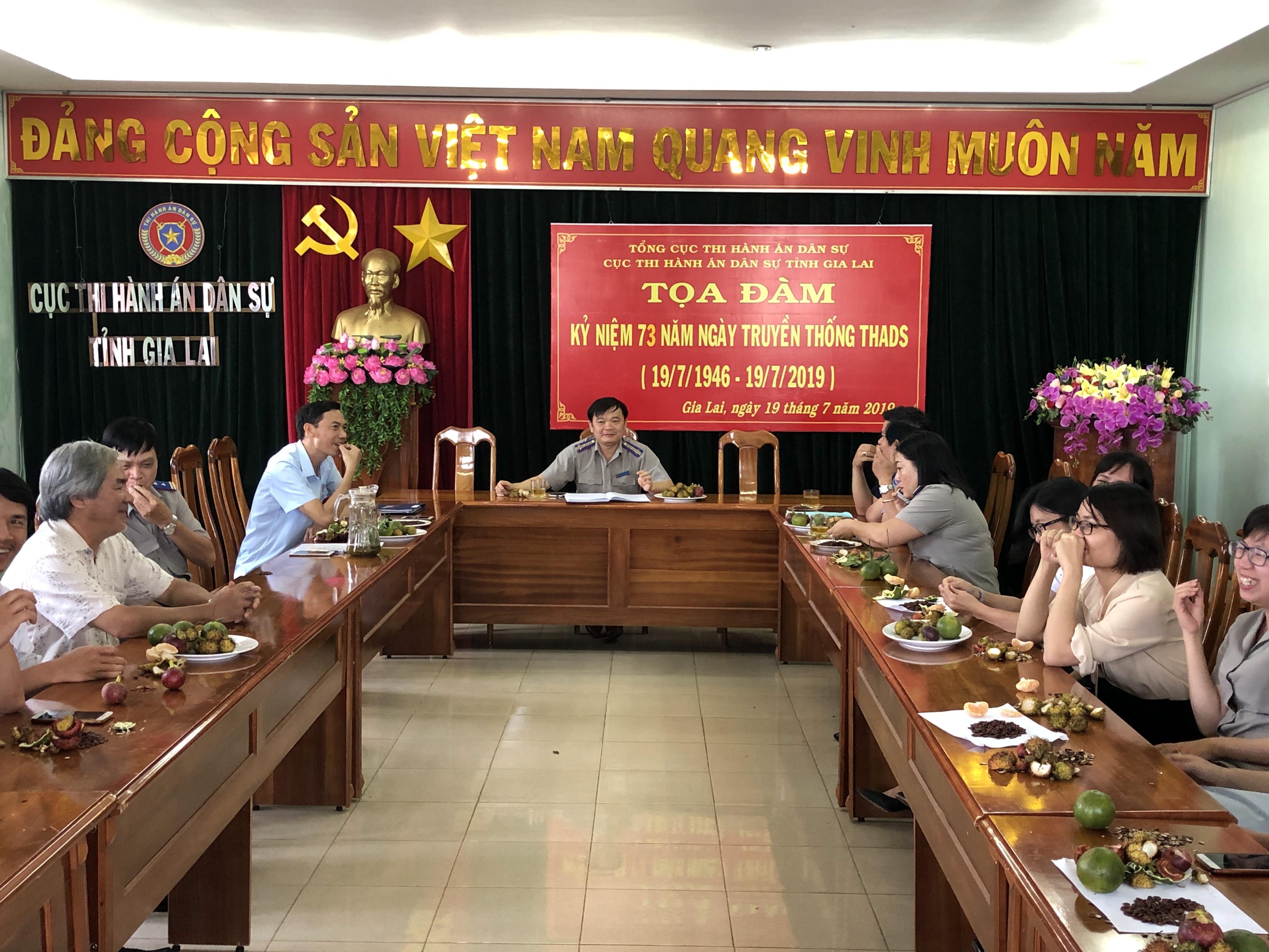 Thực hiện Kế hoạch số 1895/KH-BTP ngày 27 tháng 5 năm 2019 của Bộ Tư pháp về việc kỷ niệm 73 năm ngày Truyền thống Thi hành án dân sự (19/7/1946 -19/7/2019) trong Hệ thống Thi hành án dân sự, Cục Thi hành án dân sự tỉnh ban hành Kế hoạch số 694/KH-CTHADS , ngày 07 tháng 6 năm 2019 tổ chức hoạt động chào mừng kỷ niệm đối với các Cơ quan Thi hành án dân sự của tỉnh Gia Lai.