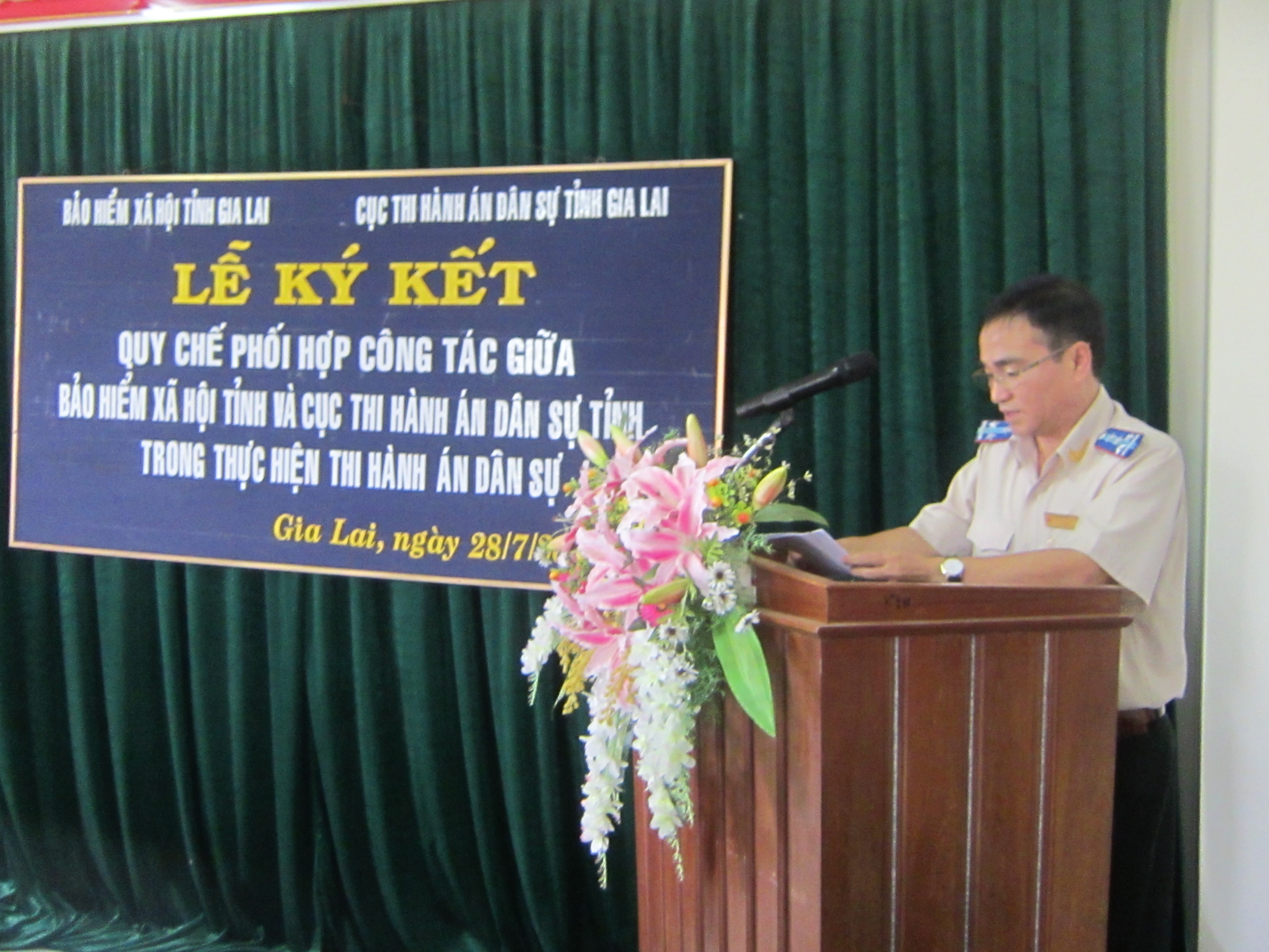 Tham dự Lễ ký có đ/c Võ Văn Tuấn, Cục trưởng Cục THADS tỉnh, đ/c Thới Văn Đạo, Giám đốc BHXH tỉnh; các Phó Cục trưởng, Phó giám đốc cùng lãnh đạo 05 Phòng chuyên môn thuộc Cục và lãnh đạo 09 Phòng nghiệp vụ thuộc BHXH tỉnh Gia Lai.