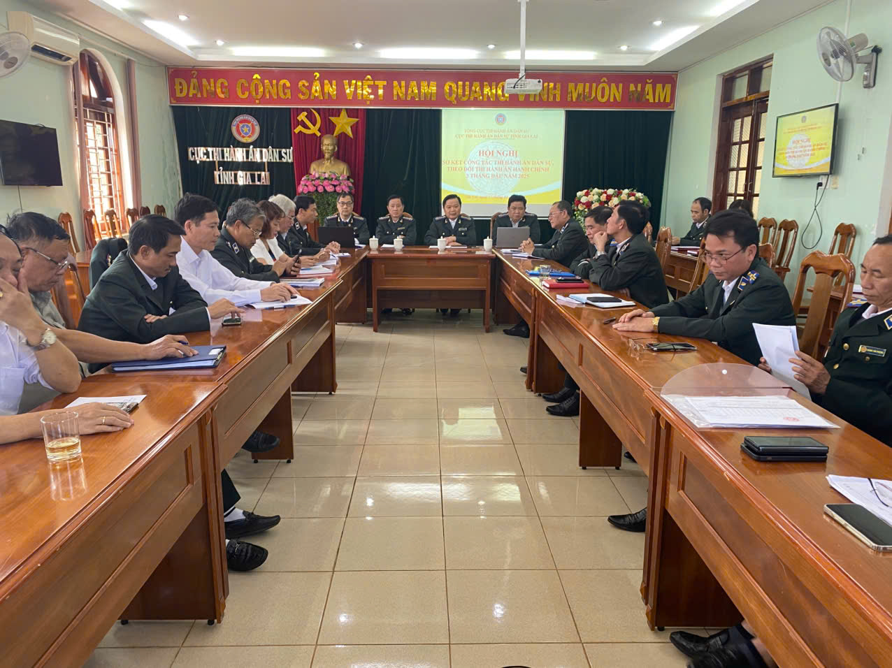 Chiều ngày 17/01/2025, Cục Thi hành án dân sự tỉnh Gia Lai tổ chức Hội nghị sơ kết công tác quý I năm 2025. Đồng chí Đào Trọng Giáp, Cục trưởng chủ trì Hội nghị. Tham dự hội nghị có các đồng chí Phó Cục trưởng, Lãnh đạo các phòng chuyên môn, chấp hành viên, thẩm tra viên thuộc Cục, Chi cục trưởng Chi cục Thi hành án dân sự các huyện, thị xã, thành phố trên địa bàn tỉnh.