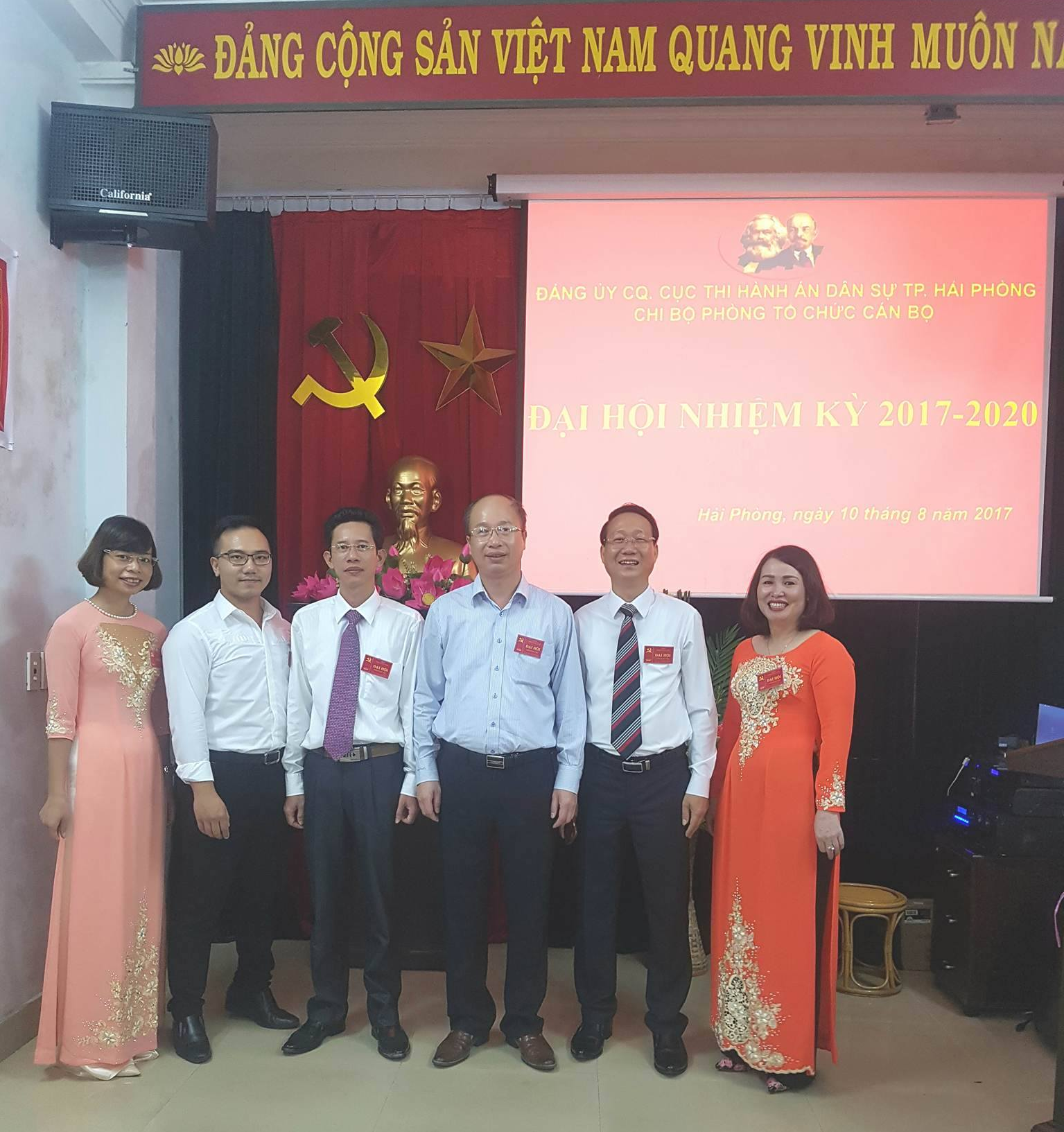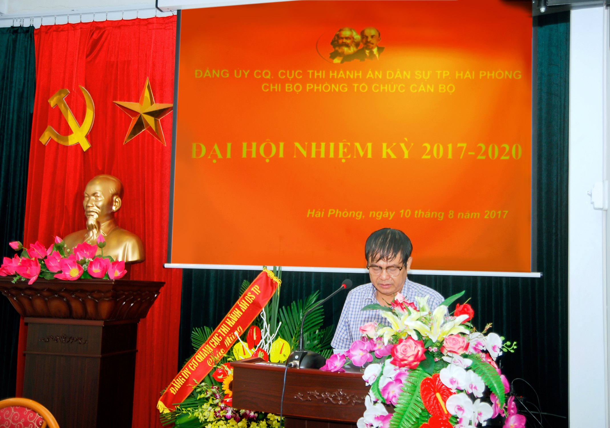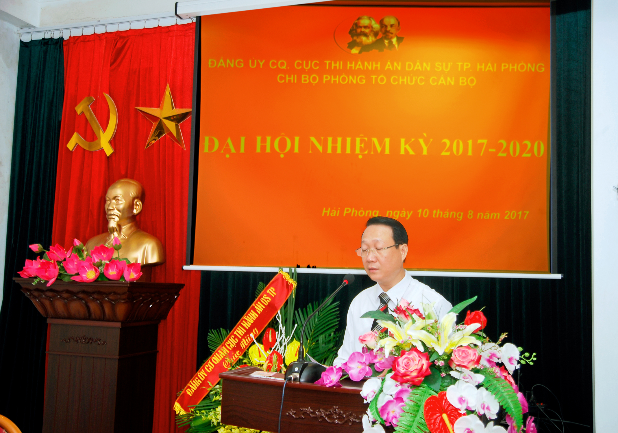 Chiều ngày 10 tháng 8 năm 2017, trong khí thế thi đua sôi nổi cùng Đảng bộ cơ quan Cục Thi hành án dân sự thành phố Hải Phòng phấn đấu thực hiện thắng lợi các nhiệm vụ, lập thành tích thiết thực Kỷ niệm 72 năm Cách mạng Tháng Tám (19/8/1945-19/8/2017) và Quốc khánh 2-9 (2/9/1945-2/9/2017), Chi bộ Phòng Tổ chức cán bộ Cục Thi hành án dân sự thành phố đã long trọng tổ chức Đại hội Chi bộ nhiệm kỳ 2017-2020.