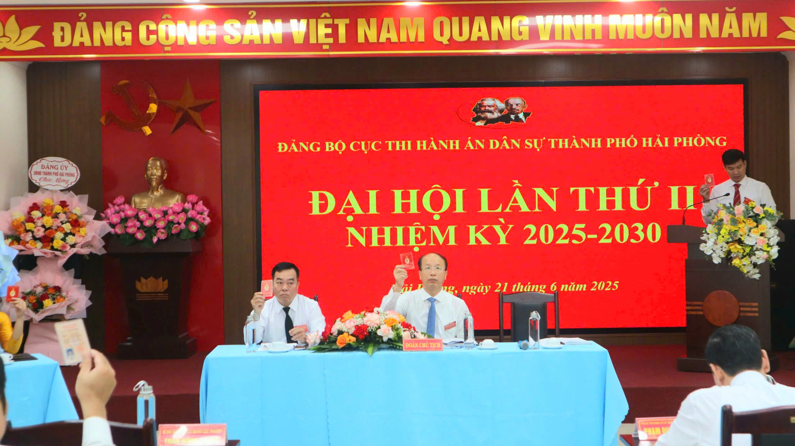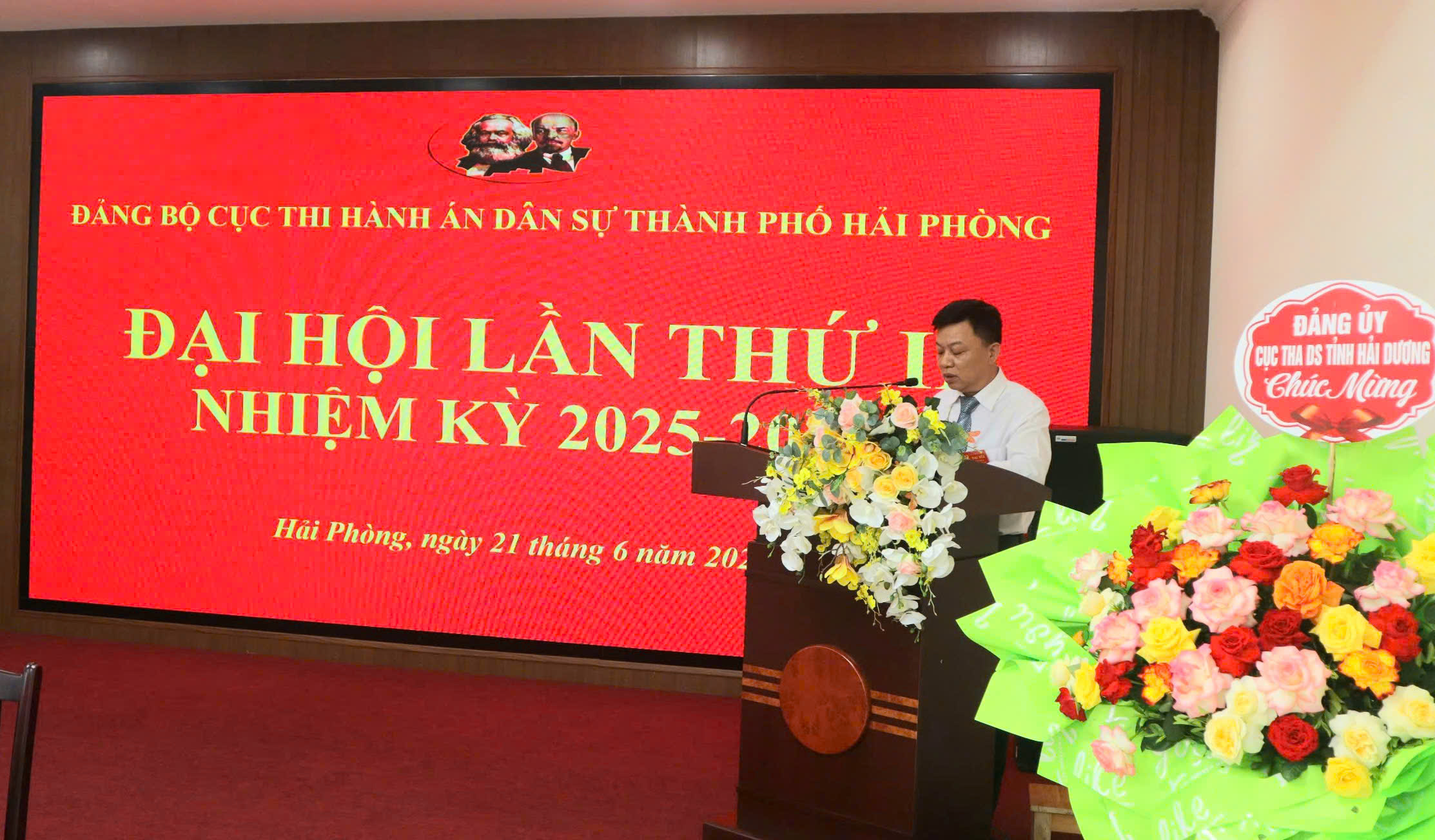 Phát biểu bế mạc Đại hội, đồng chí Trần Hồng Quang - Bí thư Đảng ủy, Cục trưởng Cục THADS thành phố khẳng định quyết tâm cùng tập thể Đảng bộ thực hiện thắng lợi các mục tiêu đề ra, góp phần nâng cao hiệu quả công tác thi hành án dân sự, phục vụ tốt hơn nhiệm vụ chính trị của đơn vị. Sau thời gian làm việc khẩn trương, nghiêm túc, đúng theo Điều lệ Đảng, Đại hội Đảng bộ Cục THADS tỉnh lần thứ II, nhiệm kỳ 2025-2030 đã thành công tốt đẹp, với tinh thần đoàn kết và nhất trí cao, toàn thể đảng viên Đảng bộ đã biểu quyết thông qua Nghị quyết Đại hội và quyết tâm hoàn thành thắng lợi các mục tiêu, nhiệm vụ chính trị nhiệm kỳ 2025-2030.