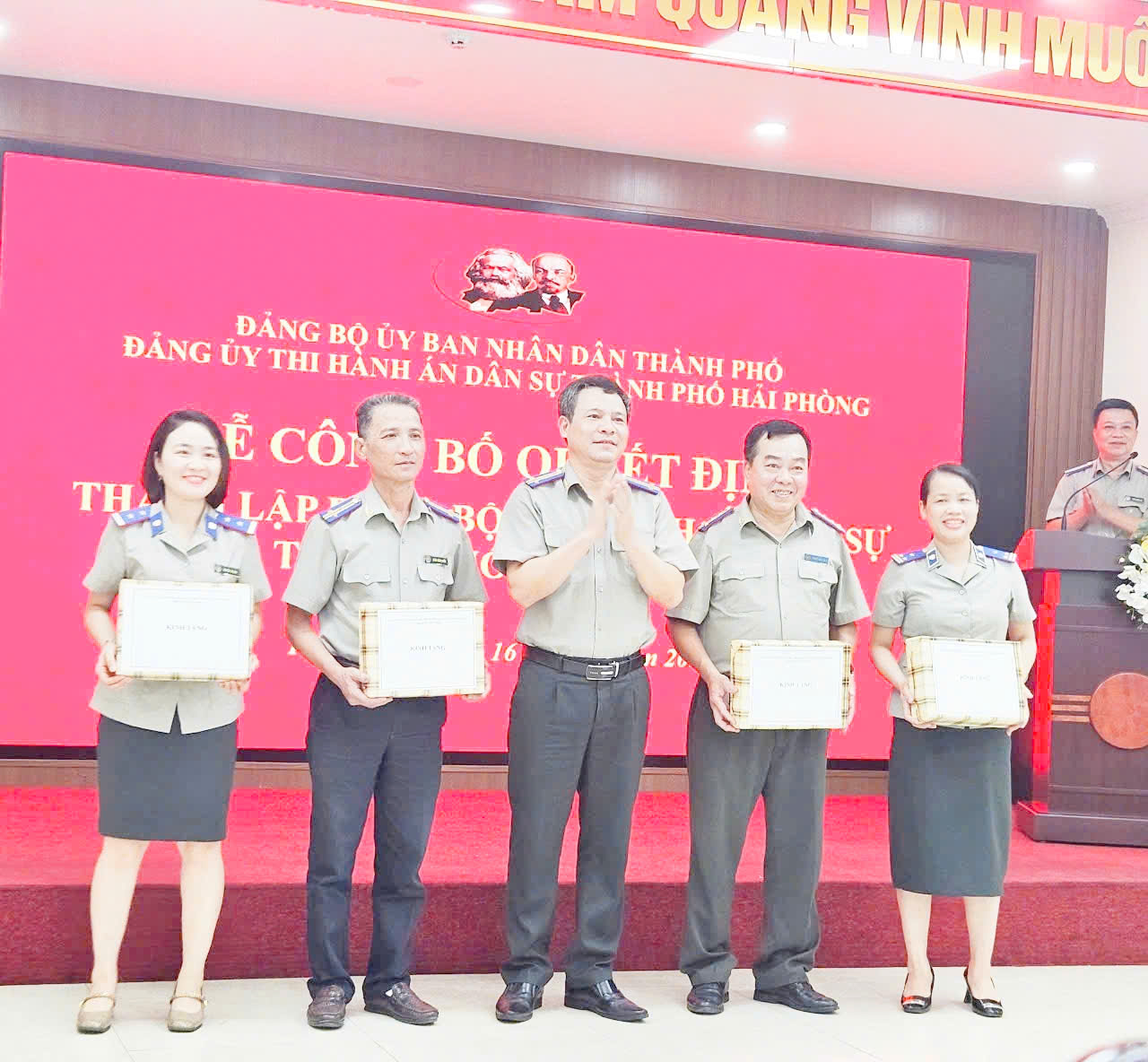 Ngày 16/7/2025, Đảng ủy Thi hành án dân sự thành phố Hải Phòng tổ chức Hội nghị công bố Quyết định thành lập Đảng bộ Thi hành án dân sự thành phố Hải Phòng; chỉ định Ban Chấp hành Đảng bộ, Ban Thường vụ, Bí thư, Phó bí thư Đảng ủy; Ủy ban Kiểm tra, Chủ nghiệm, Phó Chủ nhiệm ủy ban Kiểm tra Đảng ủy Thi hành án dân sự thành phố Hải Phòng, nhiệm kỳ 2025 – 2030.