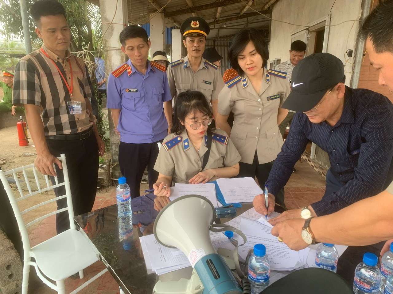 Tại thời điểm cưỡng chế, mặc dù đã được thông báo hợp lệ nhưng người phải thi hành án vắng mặt không có lý do chính đáng. Sau khi Chấp hành viên công bố quyết định cưỡng chế, lực lượng tham gia cưỡng chế nhanh chóng triển khai theo kế hoạch, tiến hành lập biên bản liệt kê tài sản, niêm phong và di chuyển ra khỏi khu vực cưỡng chế đến kho bảo quản và tiến hành giao đất, tài sản gắn liền với đất cho người được đúng quy định pháp luật.