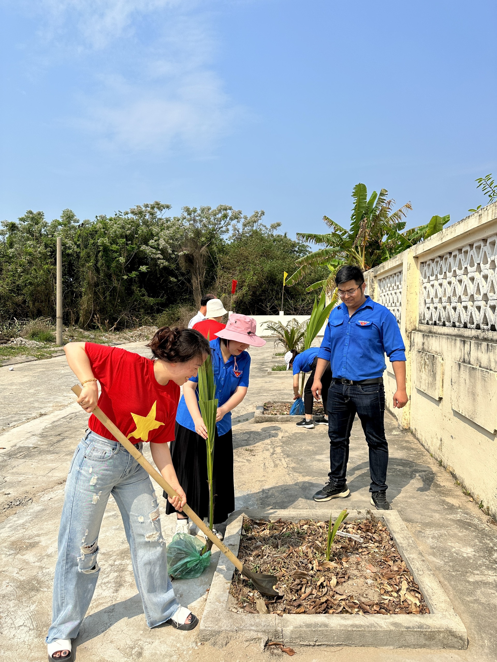 Chi đoàn tổ chức thăm và trồng cây tại trụ sở Chi cục Thi hành án dân sự huyện Bạch Long Vĩ.