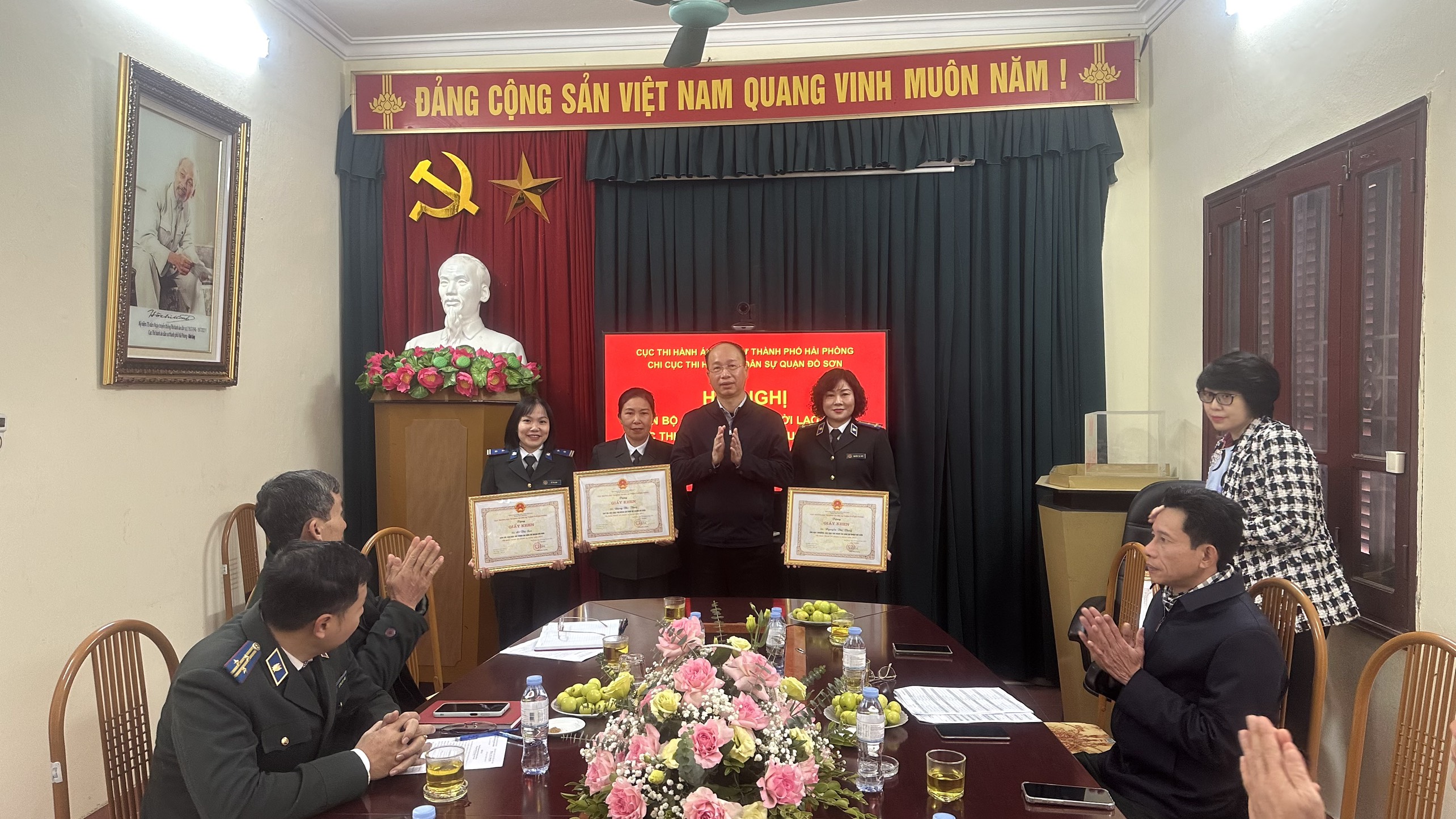 Trên cơ sở kết quả của các mặt công tác năm 2023, Hội nghị đã trao tặng các danh hiệu: Tập thể lao động xuất sắc cho 01 tập thể; Bằng khen của Bộ trưởng Bộ Tư pháp cho 01 tập thể và 02 cá nhân; Danh hiệu “Chiến sĩ thi đua cơ sở” cho 06 cá nhân và Giấy khen của Cục trưởng Cục THADS thành phố cho 01 tập thể, 10 cá nhân