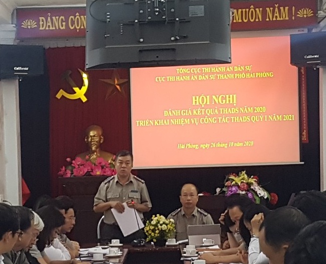 Ngày 26/10/2020, Cục Thi hành án dân sự thành phố Hải Phòng tổ chức đánh giá kết quả THADS năm 2020, triển khai nhiệm vụ công tác THADS Quý I năm 2021. Hội nghị do đồng chí Trần Hồng Quang- Cục trưởng chủ trì, thành phần tham dự có các đồng chí lãnh đạo Cục, lãnh đạo các Phòng chuyên môn và Chi cục trưởng Chi cục THADS quận, huyện.