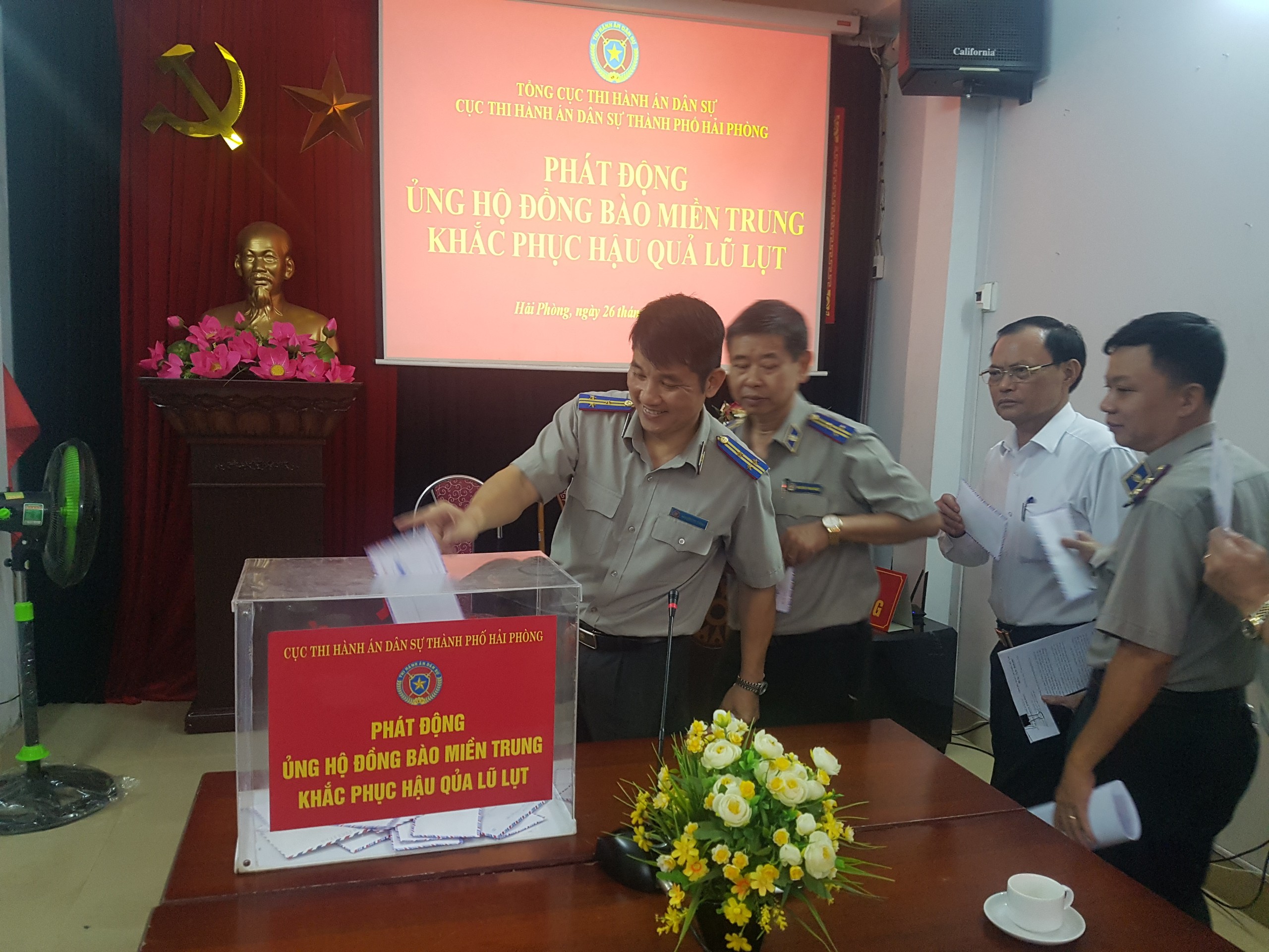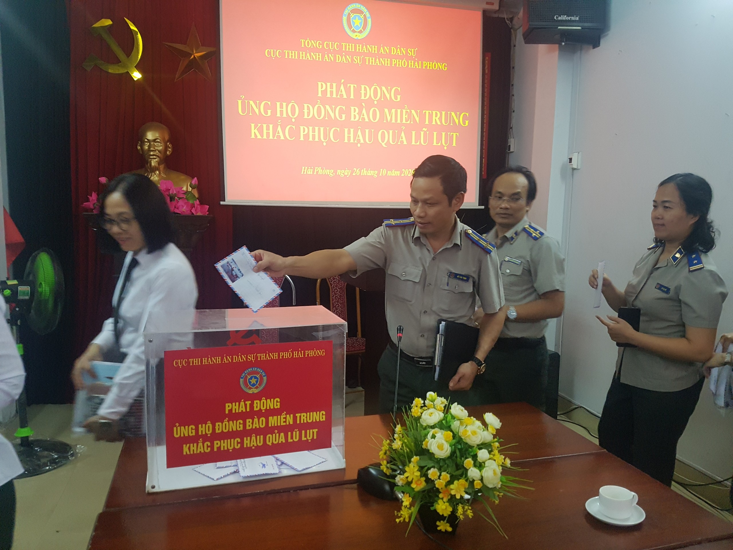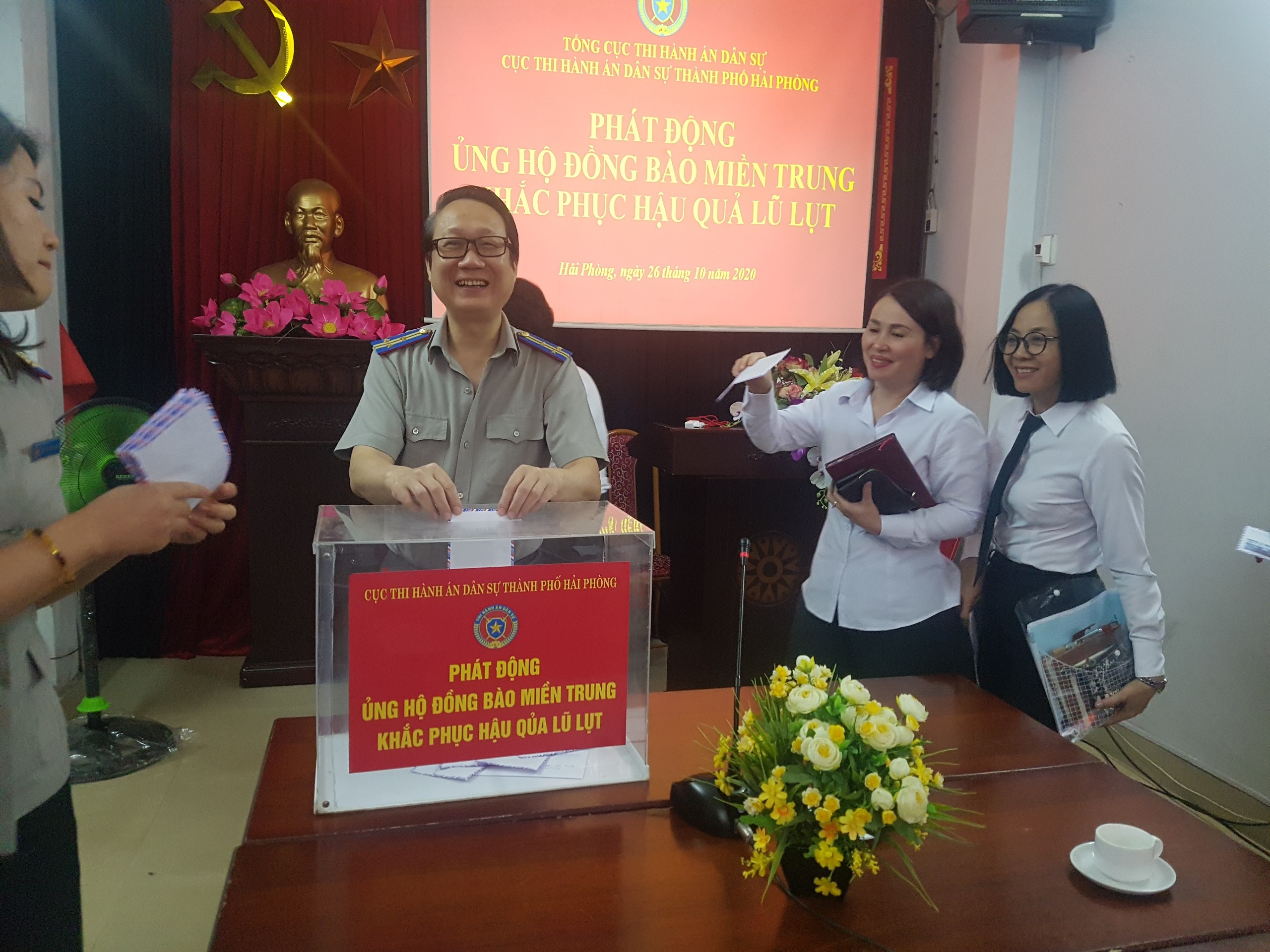 Ngay sau Hội nghị, hưởng ứng Thư kêu gọi Quyên góp ủng hộ đồng bào các tỉnh miền Trung bị thiệt hại do mưa lũ của Ủy ban Mặt trận tổ quốc Việt Nam thành phố Hải Phòng ngày 16/10/2020; Công văn số 69/CV-CĐVC ngày 21/10/2020 của Công đoàn Viên chức thành phố nhằm kịp thời chia sẻ, giúp đỡ đồng bào miền Trung bị ảnh hưởng do mưa lũ; Công văn số 3646/TCTHADS-NV3 ngày 23/10/2020 của tổng cục THADS, thay mặt lãnh đạo cơ quan và Công đoàn đồng chí Nguyễn Thị Mai Hoa- Phó Cục trưởng, Chủ tịch Công đoàn đã kêu gọi toàn thể công chức, người lao động các cơ quan THADS thành phố phát huy truyền thống “tương thân, tương ái” cùng chung tay chia sẻ, ủng hộ nhân dân miền Trung bị bão lũ, thiên tai nhanh chóng khôi phục sản xuất và ổn định đời sống. Các đồng chí tham dự Hội nghị đã tích cực đóng góp, ủng hộ Thư kêu gọi, góp phần cùng Hệ thống THADS chung tay vì miền Trung thân yêu. Thay mặt lãnh đạo, BCH Công đoàn, đồng chí trân trọng cảm ơn sự đóng góp ủng hộ của các đơn vị, công chức, người lao động đang công tác tại các cơ quan THADSTP. BCH Công đoàn Cục THADS thành phố đã tổng hợp và kịp thời chuyển số tiền đóng góp về Ủy ban Mặt trận tổ quốc Việt Nam thành phố Hải Phòng để hỗ trợ nhân dân Miền Trung bị thiệt hại, ảnh hưởng do thiên tai, bão lũ./.