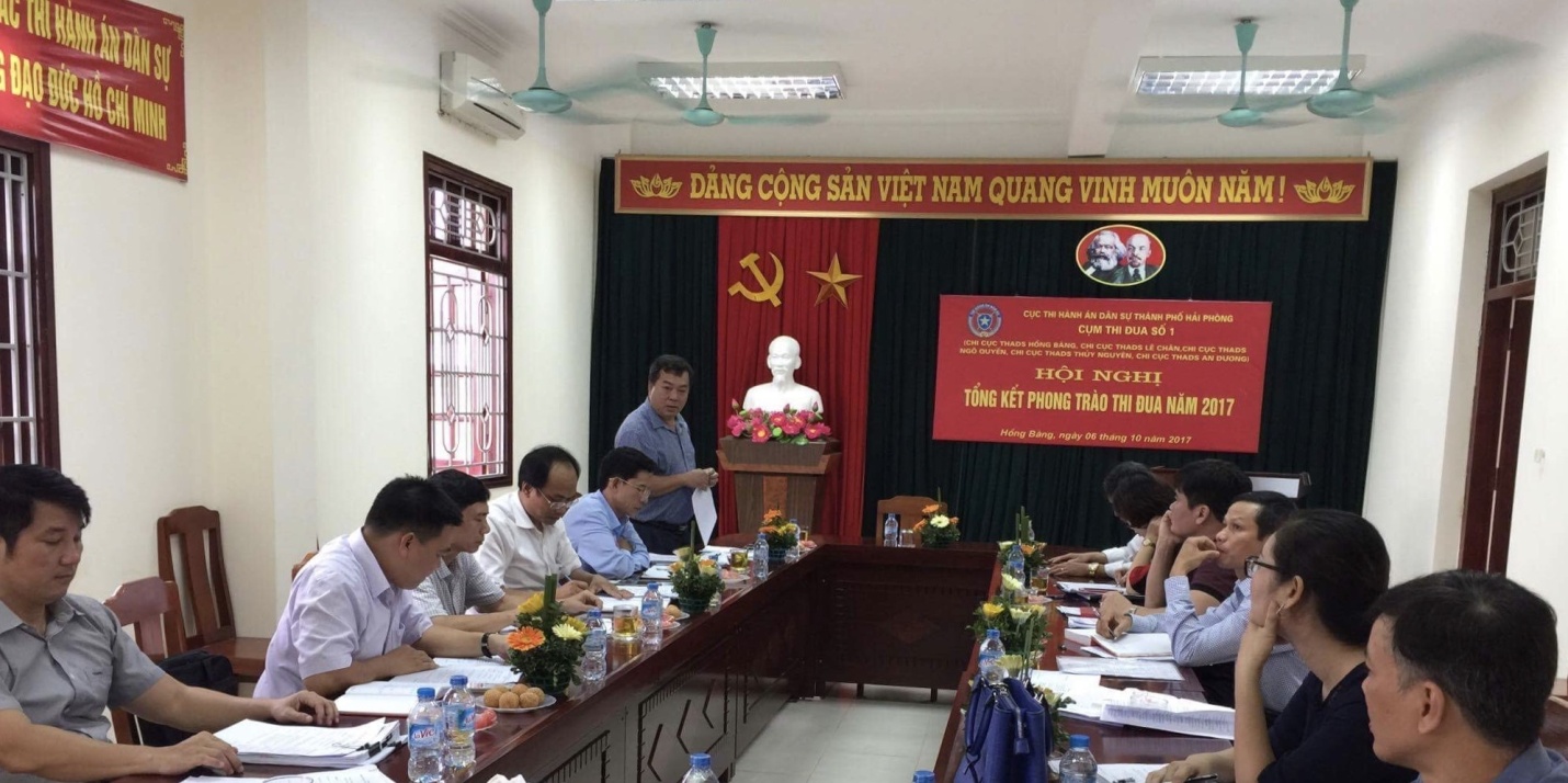 Thực hiện chỉ đạo của Cục Thi hành án dân sự thành phố, ngày 06/10/2017 Cụm thi đua số 1 đã tổ chức Hội nghị tổng kết phong trào thi đua năm 2017 tại Chi cục Thi hành án dân sự quận Hồng Bàng. Về dự và chỉ đạo Hội nghị có đồng chí Phạm Tiến Binh-Phó Cụm trưởng Cục Thi hành án dân sự thành phố và đồng chí Trần Công Chu-Phó trưởng phòng tổ chức cán bộ. Cụm thi đua có các đồng chí Chi cục Trưởng, Phó Chi cục trưởng Chi cục Thi hành án dân sự quận Hồng Bàng, quận Lê Chân, quận Ngô Quyền, huyện An Dương, huyện Thủy Nguyên.
