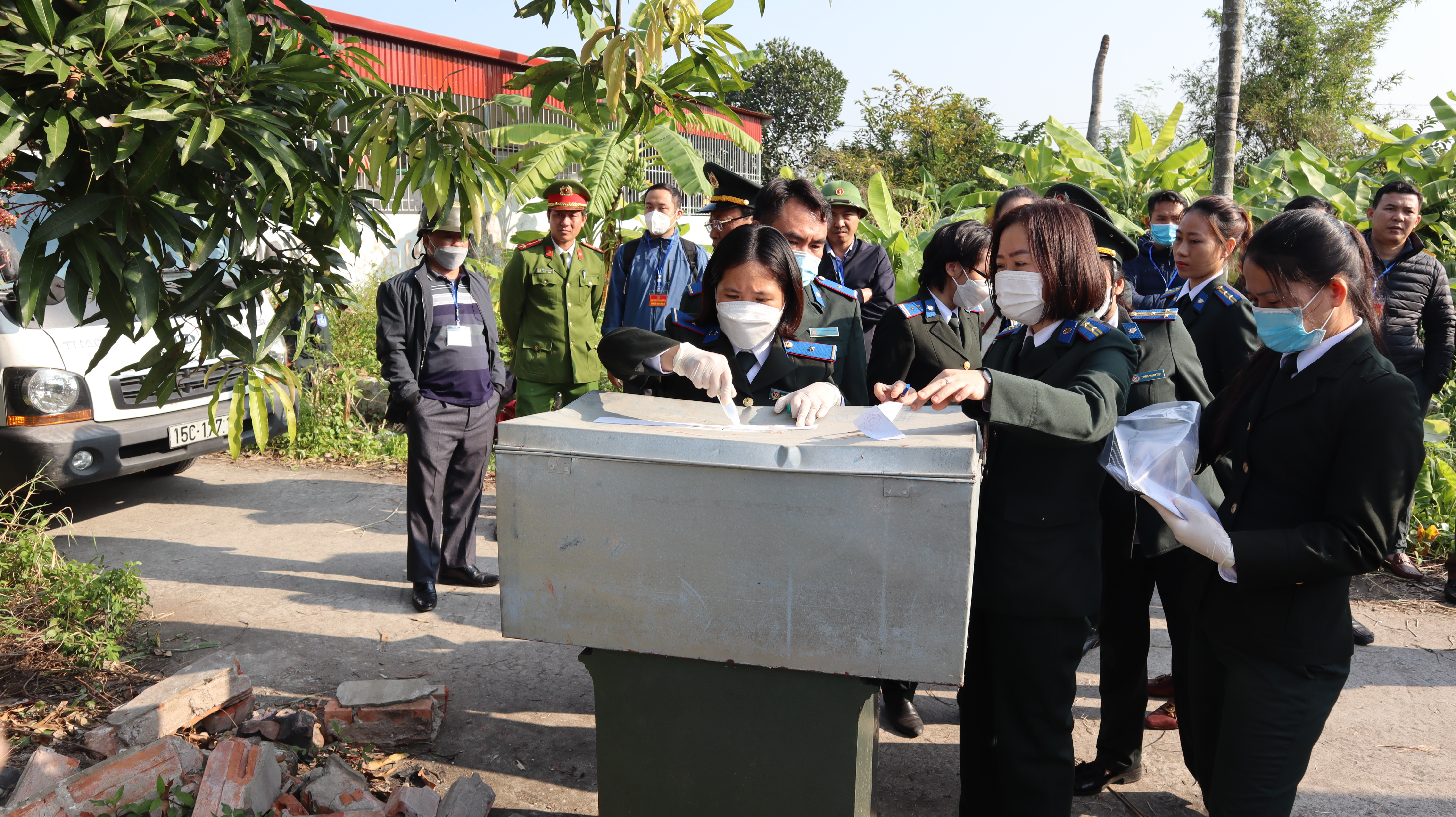 Sau khi Chấp hành viên công bố quyết định cưỡng chế, lực lượng chức năng đã tiến hành hoạt động rà phá bom mìn, kiểm kê, niêm phong các loại tài sản có trong nhà và diện tích đất phải giao, di chuyển toàn bộ đồ đạc của gia đình ông Phạm Văn Khuê, bà Nguyễn Thị Phượng và con là anh Phạm Văn Mai về kho vật chứng của đơn vị đồng thời tiến hành giao tài sản cho người được thi hành án.