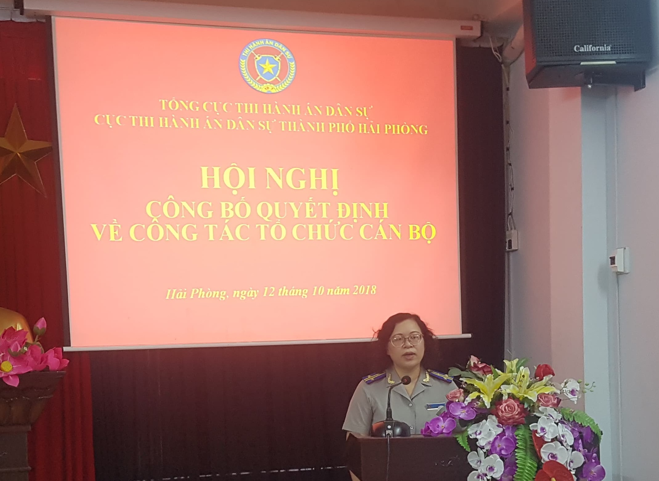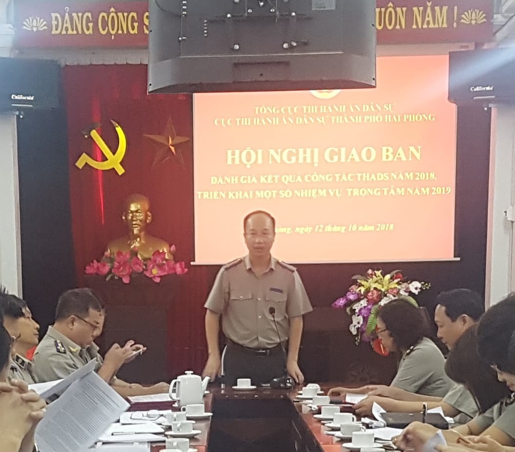 Ngày 12/10/2018, Cục Thi hành án dân sự thành phố tổ chức Hội nghị Công bố quyết định về công tác tổ chức cán bộ và Giao ban công tác thi hành án dân sự 12 tháng. Thành phần tham dự Hội nghị gồm có đồng chí Trần Hồng Quang,Cục Trưởng Cục Thi hành án dân sự thành phố - chủ trì Hội nghị; các đồng chí Phó cục trưởng, Trưởng Phó các phòng chuyên môn Cục Thi hành án dân sự thành phố; các đồng chí Chi cục trưởng Chi cục Thi hành án dân sự quận, huyện…