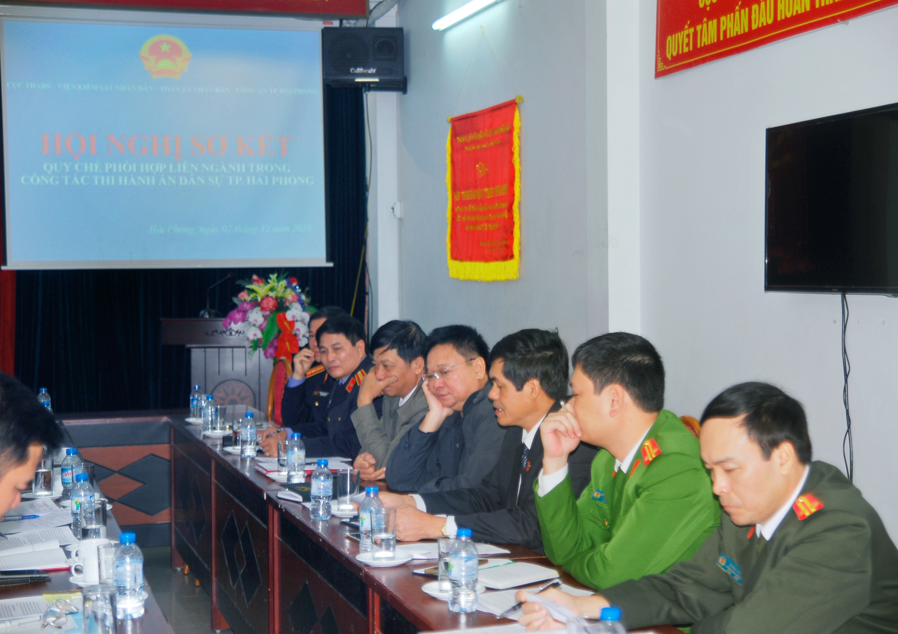 Thực hiện chỉ đạo của Tổng cục Thi hành án dân sự tại văn bản số 3664/TCTHADS-NV1 ngày 04/11/2016 về việc sơ kết Quy chế phối hợp liên ngành trong công tác thi hành án dân sự, sáng ngày 02/11/2016, Cục Thi hành án dân sự thành phố đã tổ chức Hội nghị sơ kết tình hình thực hiện Quy chế phối hợp liên ngành số 01/QCPH/CTHA-VKSND-TAND-CAHP ngày 06/11/2014 giữa Cục Thi hành án dân sự thành phố, Viện kiểm sát nhân dân thành phố, Tòa án nhân dân thành phố, Công an thành phố Hải Phòng.