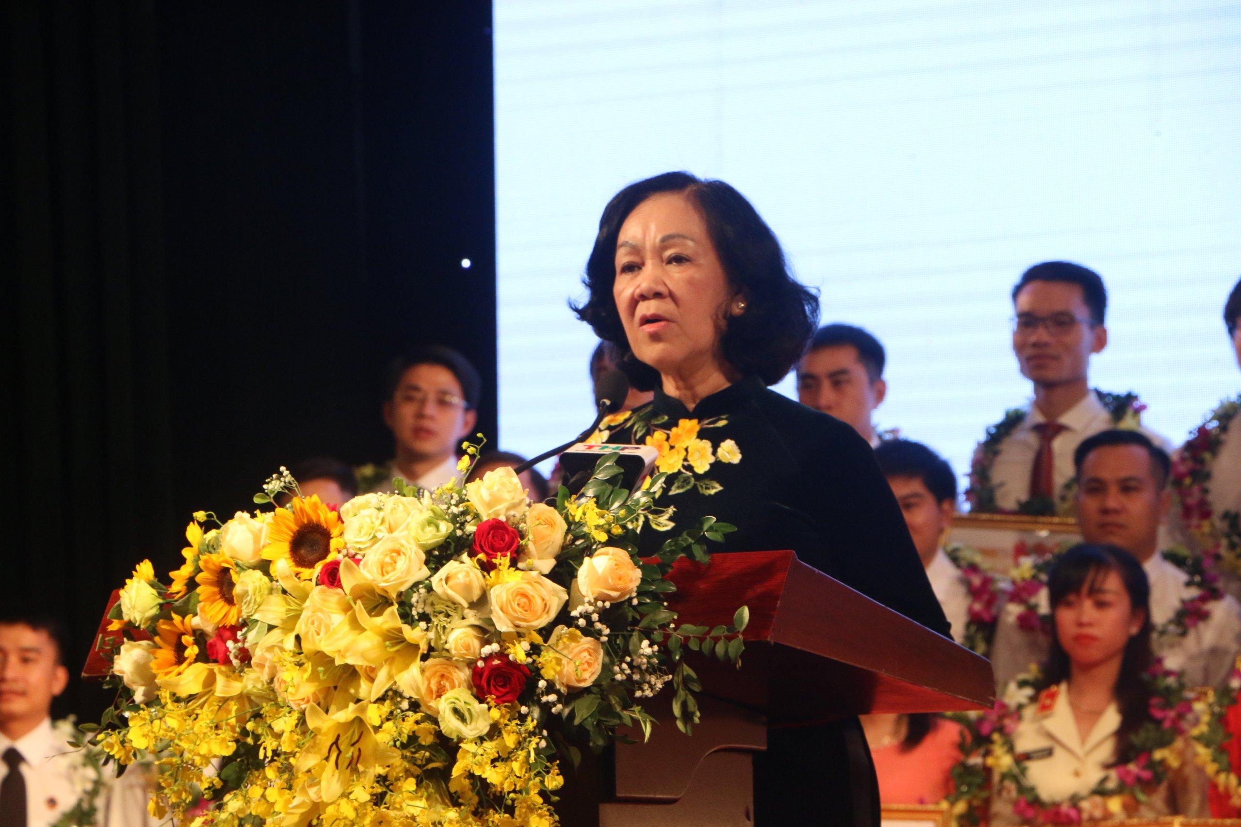 Đ/c Trương Thị Mai- Ủy viên Bộ Chính trị, Bí thư Trung ương Đảng, Trưởng Ban Dân vận Trung ương phát biểu tại buổi lễ