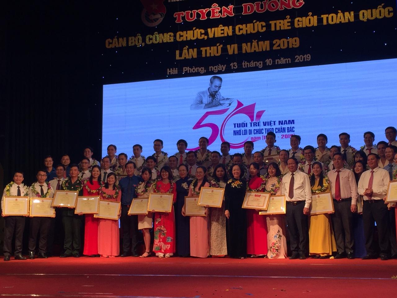 Tối ngày 13/10/2019, tại thành phố Hải Phòng, Trung ương Đoàn thanh niên cộng sản Hồ Chí Minh tổ chức Lễ Tuyên dương “Cán bộ, công chức, viên chức trẻ giỏi” toàn quốc lần thứ VI. Nhằm thiết thực kỷ niệm 89 năm ngày truyền thống công tác Dân vận của Đảng (15/10/1930- 15/10/2019); 70 năm ngày Bác Hồ viết bài báo Dân vận (15/10/1949 - 15/10/2019); 50 năm thực hiện Di chúc của Chủ tịch Hồ Chí Minh.