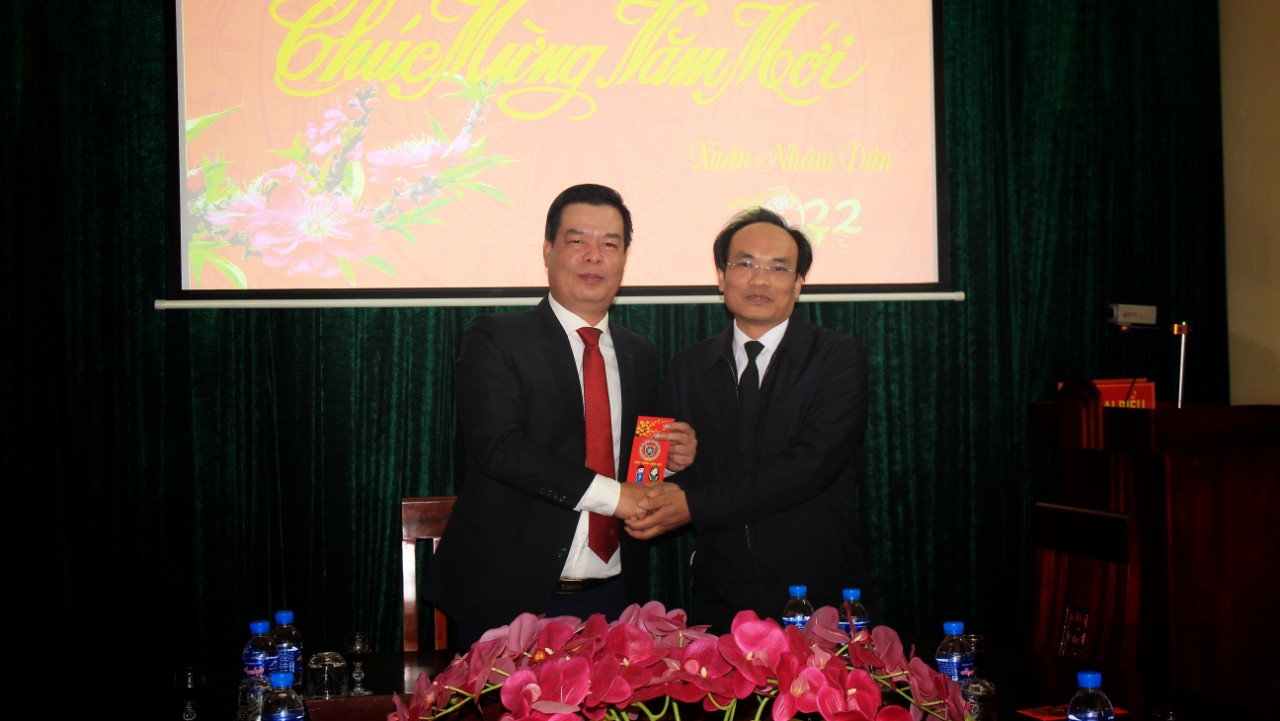 Đồng chí Bí thư Huyện ủy Thủy Nguyên chúc tết cán bộ công chức Chi cục Thi hành án dân sự huyện Thủy Nguyên nhân ngày làm việc đầu năm mới Nhâm Dần 2022