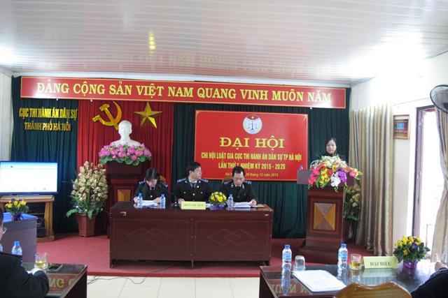 Chiều ngày 30/12/2015, Chi hội Luật gia Cục Thi hành án dân sự thành phố Hà Nội long trọng tổ chức Đại hội Chi hội lần thứ I, nhiệm kỳ 2015 – 2020. Đây là Đại hội đầu tiên trong giai đoạn lâm thời sau khi Chi hội được thành lập theo Quyết định số 104/QĐ-HLGHN ngày 28/8/2015 của Hội Luật gia thành phố Hà Nội.