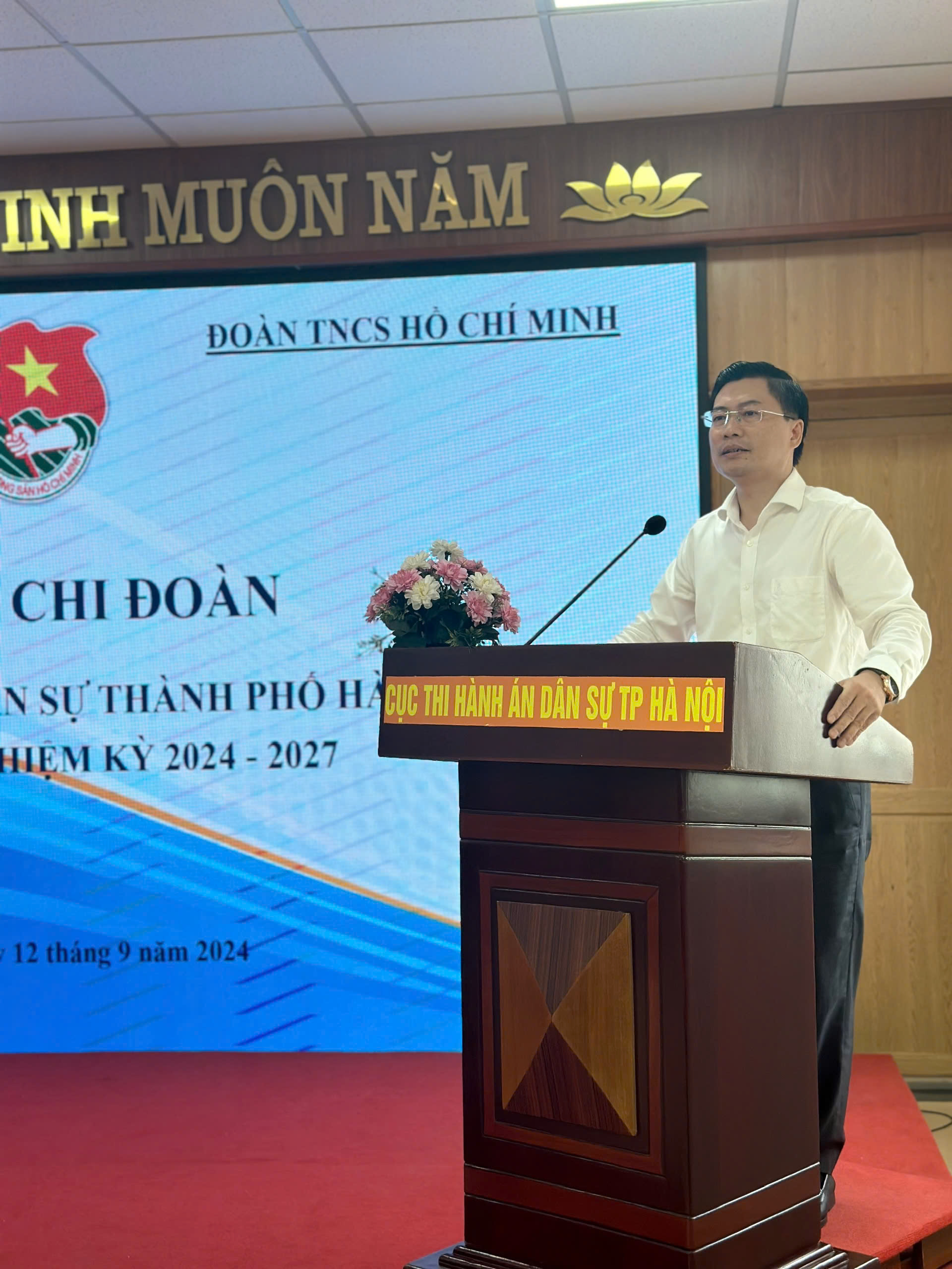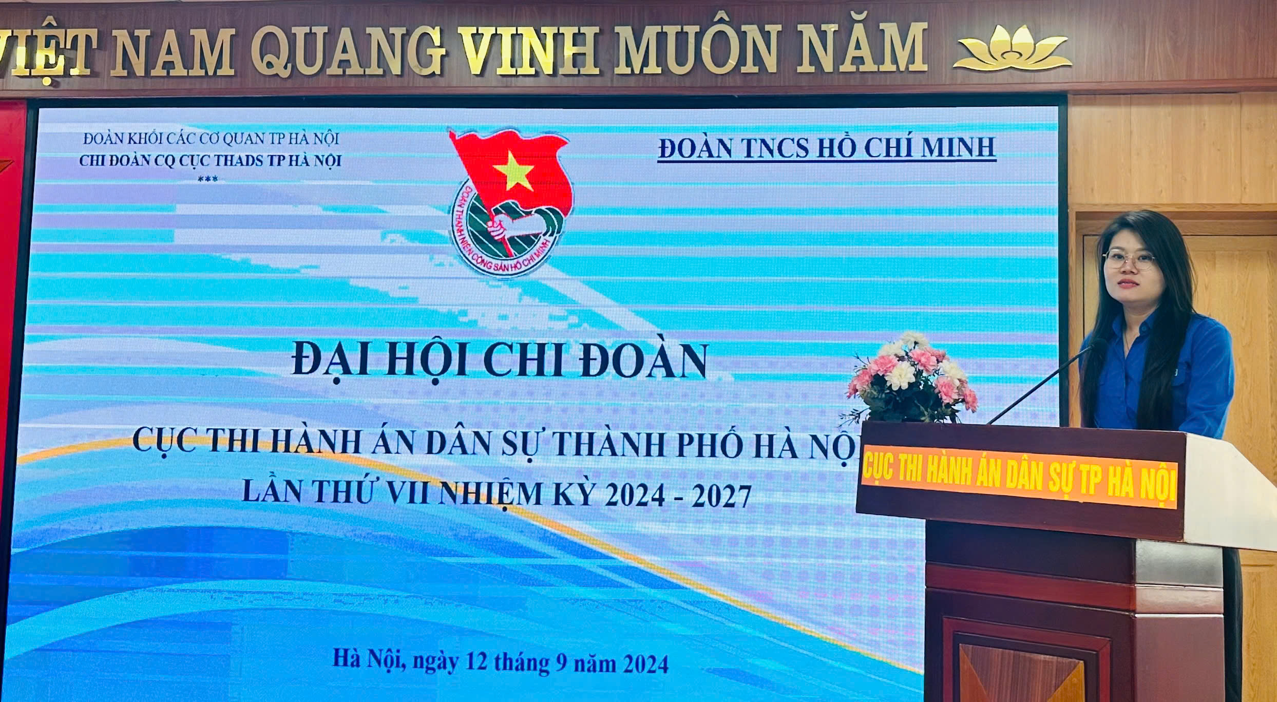 Thực hiện Hướng dẫn số 47-HD/TĐTN-TCKT ngày 18/01/2024 của Ban Chấp hành Đoàn Thành phố Hà Nội, Công văn số 55-CV/ĐTNCCQ ngày 20/02/2024 của Ban Chấp hành Đoàn Khối các cơ quan Thành phố Hà Nội về việc triển khai tổ chức Đại hội, hội nghị Đoàn TNCS Hồ Chí Minh các cấp nhiệm kỳ 2024-2027, được sự đồng ý của Đảng ủy Cục Thi hành án dân sự (THADS) thành phố Hà Nội, chiều ngày 12/9/2024, tại trụ sở Cục THADS thành phố Hà Nội, Chi đoàn thanh niên Cục THADS thành phố Hà Nội long trọng tổ chức Đại hội Chi đoàn nhiệm kỳ 2024 - 2027.