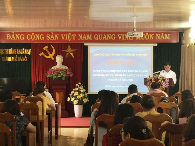 Ngày 29/3/2018, Đảng ủy Cục Thi hành án dân sự thành phố Hà Nội đã tổ chức Hội nghị sơ kết giữa nhiệm kỳ Đại hội của Ban Chấp hành Đảng bộ Cục (nhiệm kỳ 2015-2020) với sự tham gia của toàn thể Đảng viên của Đảng bộ Cục Thi hành án dân sự thành phố Hà Nội.