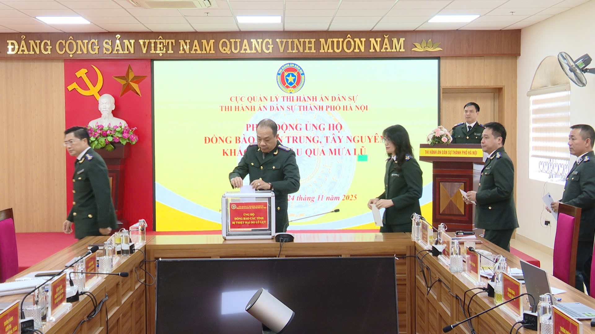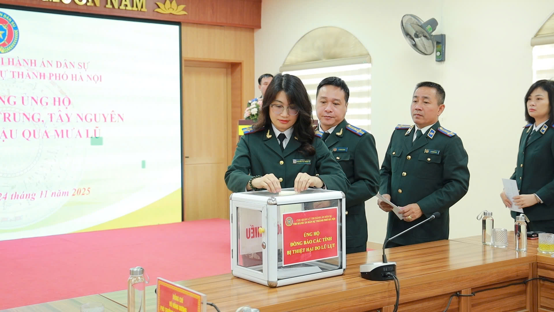 ĐẢNG ỦY, LÃNH ĐẠO THI HÀNH ÁN DÂN SỰ THÀNH PHỐ HÀ NỘI PHÁT ĐỘNG ỦNG HỘ ĐỒNG BÀO MIỀN TRUNG, TÂY NGUYÊN BỊ ẢNH HƯỞNG BỞI BÃO LŨ
