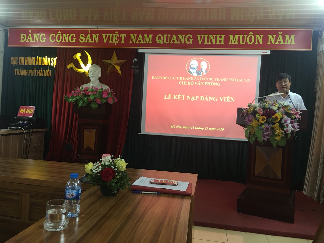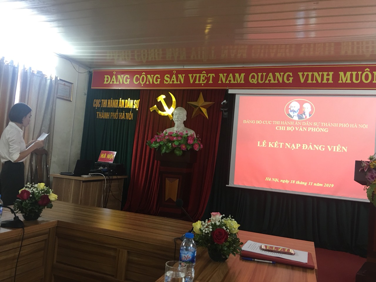 Thay mặt Chi bộ, đồng chí Nguyễn Ngọc Ánh - Phó Bí thư Chi bộ đã đọc quyết định của Đảng ủy Khối các cơ quan thành phố Hà Nội về việc kết nạp Đảng cho đồng chí Nguyễn Hương Trà và giao nhiệm vụ cho đồng chí Đảng viên mới sau một thời gian phấn đấu, rèn luyện đã được vinh dự đứng trong hàng ngũ của Đảng Cộng sản Việt Nam.