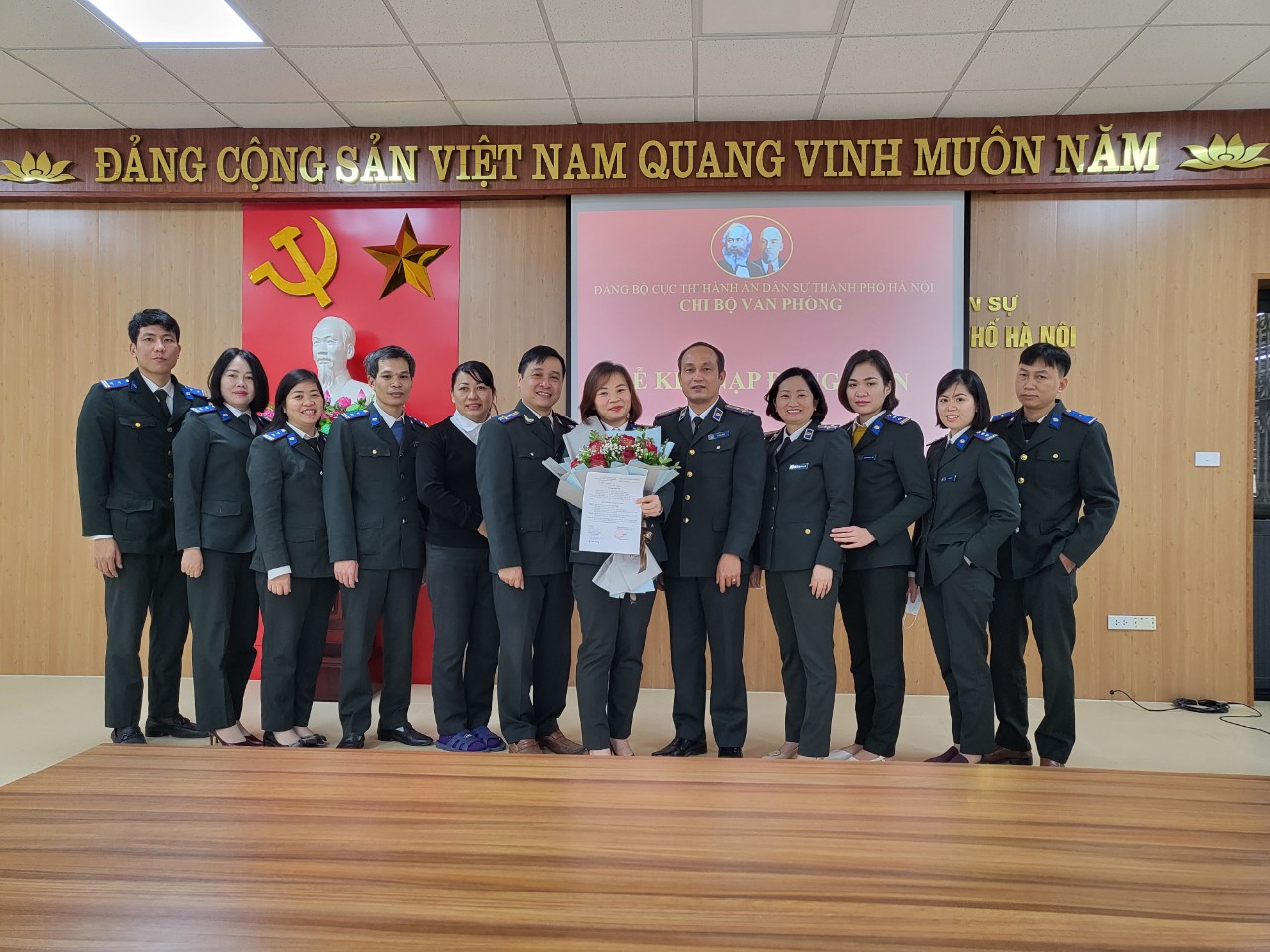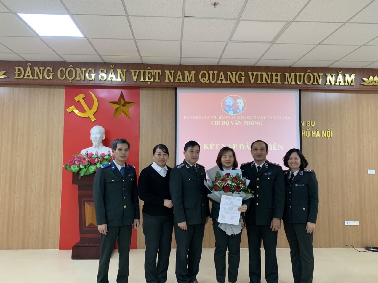 Chiều ngày 20/01/2022, được sự đồng ý của Đảng ủy Cục Thi hành án dân sự thành phố Hà Nội, Chi bộ Văn phòng tổ chức Lễ kết nạp Đảng viên cho quần chúng ưu tú Lê Thị Thu Trang. Dự buổi lễ có đồng chí Vũ Hồng Dương – Phó Bí thư Đảng ủy, Phó Cục trưởng và các đồng chí đảng viên thuộc Chi bộ.