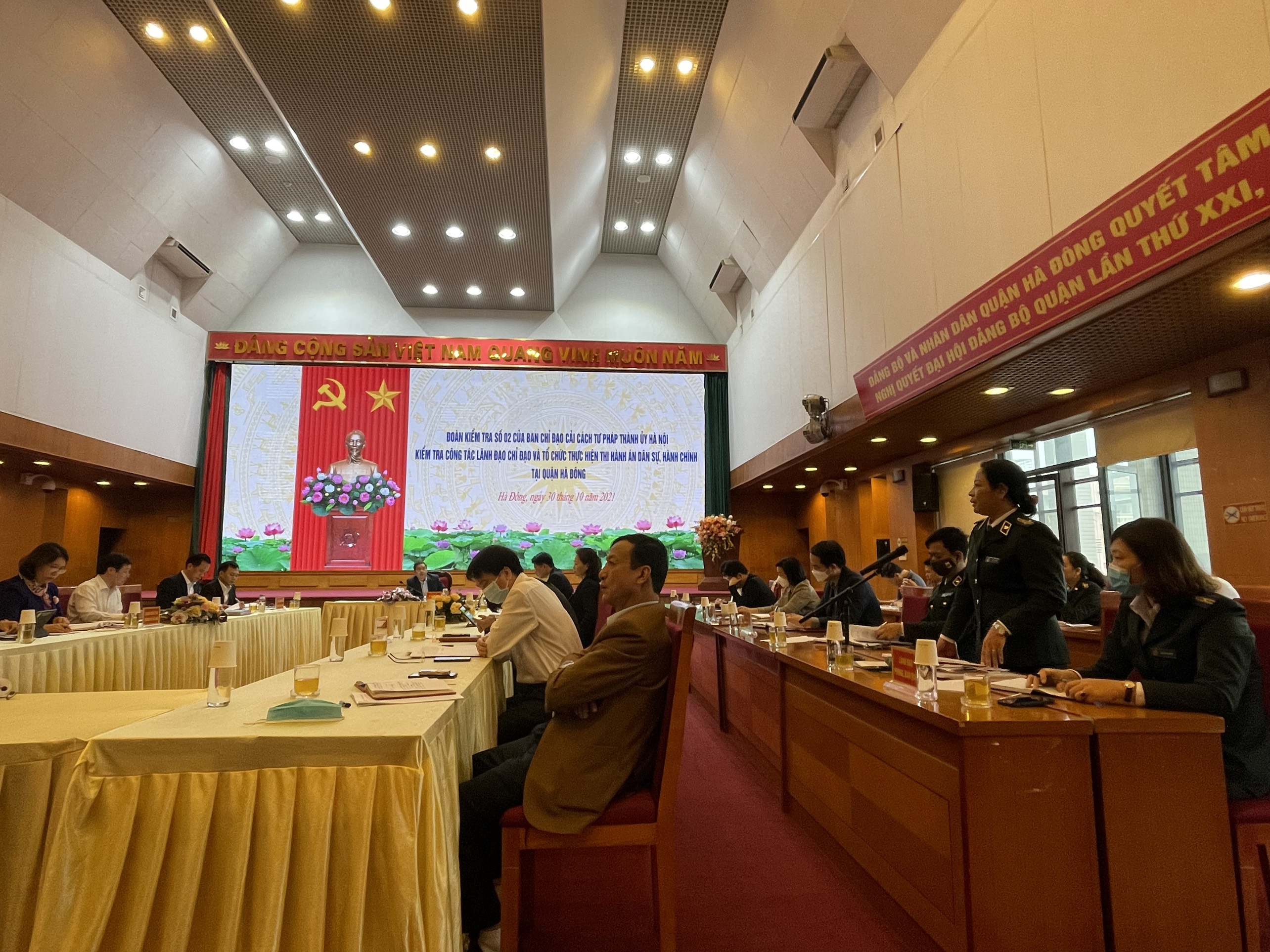 Đồng chí Nguyễn Thi Hạnh – Chi cục trưởng Chi cục Thi hành án dân sự quận Hà Đông, Phó Ban chỉ đạo Thi hành án dân sự quận Hà Đông cũng thẳng thắn nêu ra những khó khăn vướng mắc trong công tác thi hành án dân sự tại địa phương. Năm 2021, trong hoàn cảnh đối phó với sự lây lan của dịch Covid 19, Chi cục Thi hành án dân sự quận Hà Đông đã hoàn thành vượt chỉ tiêu về việc (đạt 81.64%). Để đạt được kết quả đó một phần nhờ sự phối hợp và ủng hộ của Công an, Viện kiểm sát nhân dân Quận và các cơ quan ban ngành, chính quyền địa phương. Trong những năm tới, Hà Đông sẽ còn rất nhiều những thách thức, khó khăn trong công tác thi hành án khi tốc độ phát triển đô thị tại địa phương đang rất nhanh, các khối lượng vụ việc phải thi hành sẽ ngày càng nhiều và phức tạp hơn.