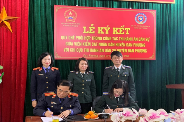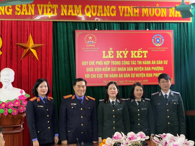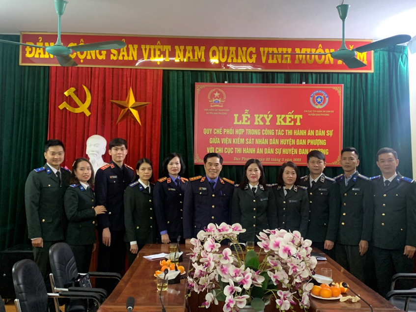 Tham dự buổi lễ có đồng chí Nguyễn Nhật Thư – Huyện ủy viên, Viện trưởng Viện Kiểm sát nhân dân huyện Đan Phượng, đồng chí Trần Phương Thúy - Chi cục trưởng Chi cục Thi hành án dân sự huyện Đan Phượng cùng sự tham gia của các đồng chí lãnh đạo, chấp hành viên, kiểm sát viên phụ trách công tác thi hành án dân sự.
