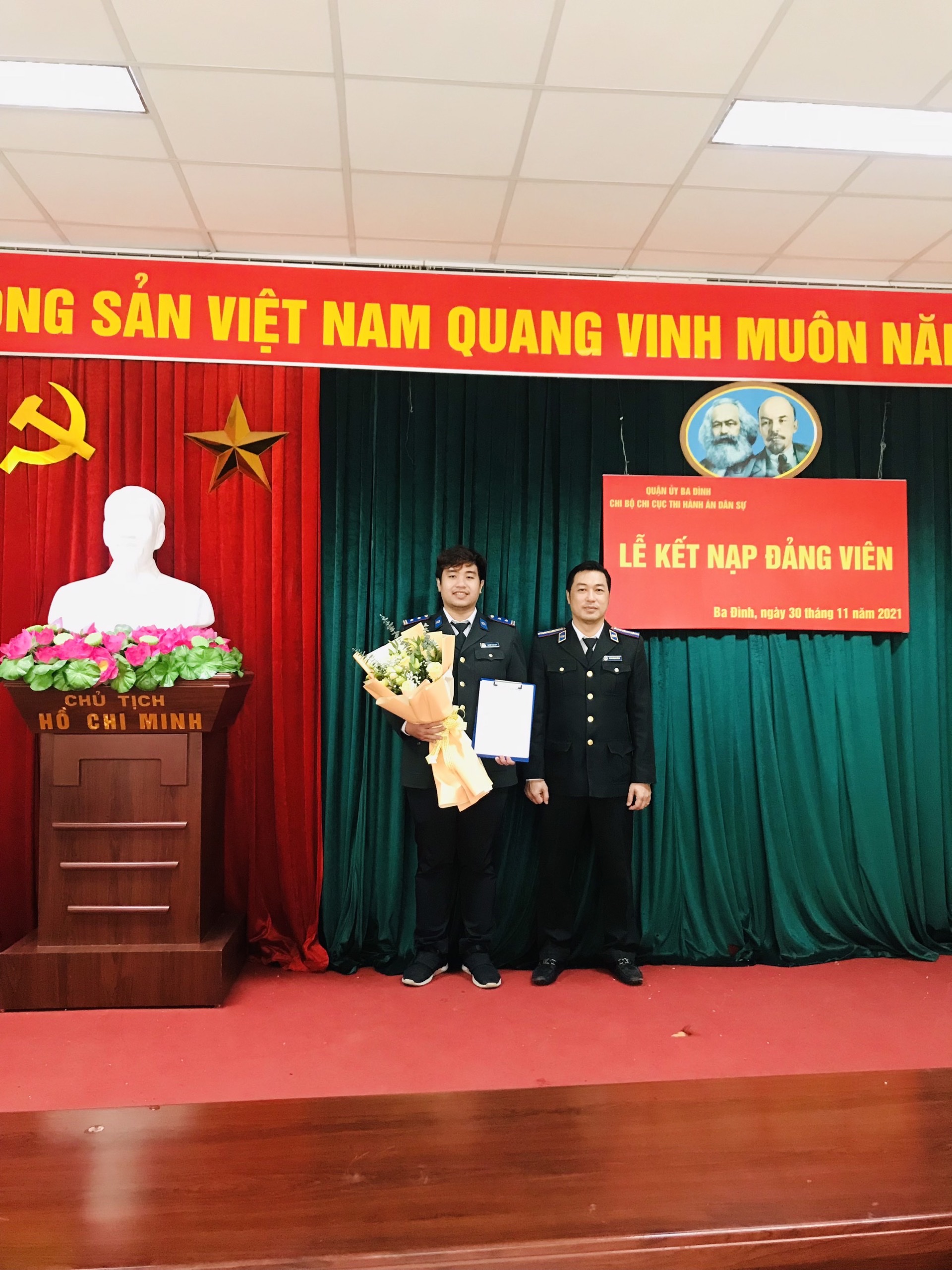 Ngày 1/12/2021 Chi bộ Chi cục Thi hành án dân sự quận Ba Đình đã tổ chức Lễ kết nạp Đảng viên cho quần chúng ưu tú: Nguyễn Thanh Huy Dự buổi lễ kết nạp đảng có đồng chí bí thư chi bộ Phan Mạnh Hùng, đồng chí Lê Tiến Mạnh – phó bí thư chi bộ và toàn thể các đảng viên trong chi bộ.