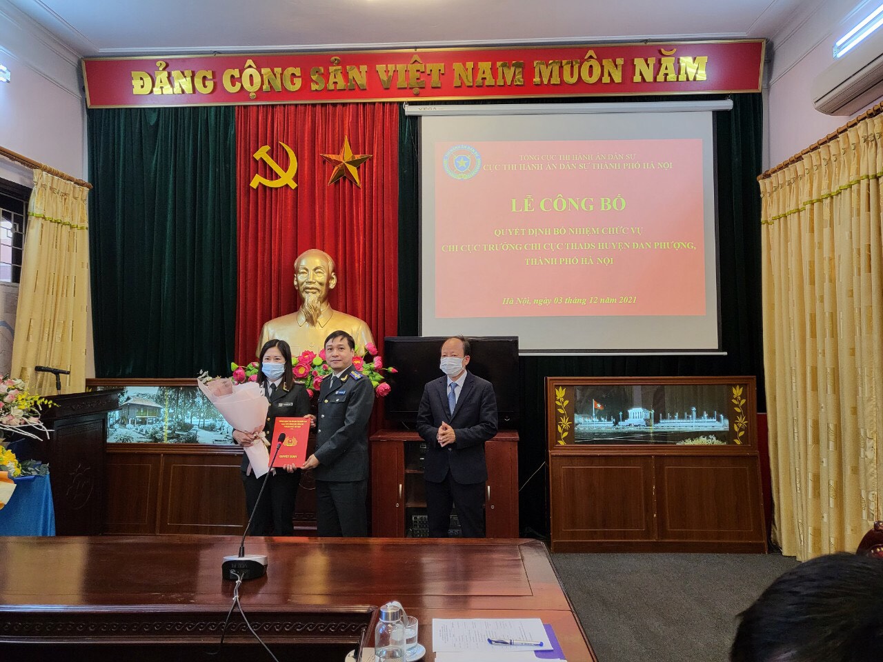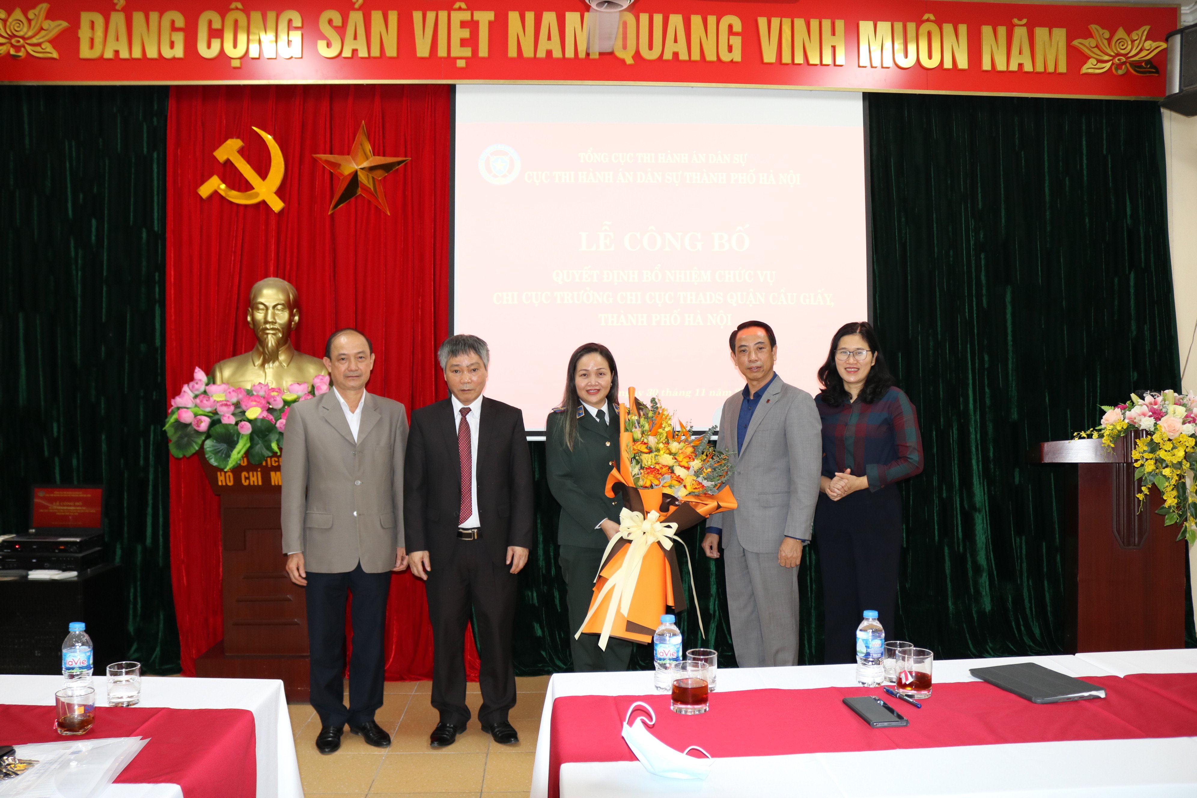- Ngày 01/12/2021 tại Chi cục THADS quận Cầu Giấy, thành phố Hà Nội, Cục THADS thành phố Hà Nội đã tổ chức chia tay đồng chí Nguyễn Đăng Mạnh – Chi cục trưởng Chi cục THADS quận Cầu Giấy và công bố Quyết định bổ nhiệm Chi cục trưởng Chi cục THADS quận Cầu Giấy đối với đồng chí Lê Thị Vĩnh Hà. Tham dự Hội nghị có đồng chí Vũ Hồng Dương – Phó Bí thư Đảng ủy, Phó Cục trưởng Cục THADS thành phố Hà Nội; đồng chí Nguyễn Văn Chiến – Phó Bí thư thường trực Quận ủy, Chủ tịch Hội đồng nhân dân quận Cầu Giấy; đồng chí Trịnh Thị Dung – Quận ủy viên, Phó Chủ tịch Ủy ban nhân dân quận Cầu Giấy; các đồng chí lãnh đạo Ban Tổ chức Quận ủy, Phòng Tư pháp, Tòa án nhân dân, Viện Kiểm sát nhân dân, Công an quận Cầu Giấy; các đồng chí lãnh đạo Đảng ủy, Ủy ban nhân dân phường Dịch Vọng Hậu.
