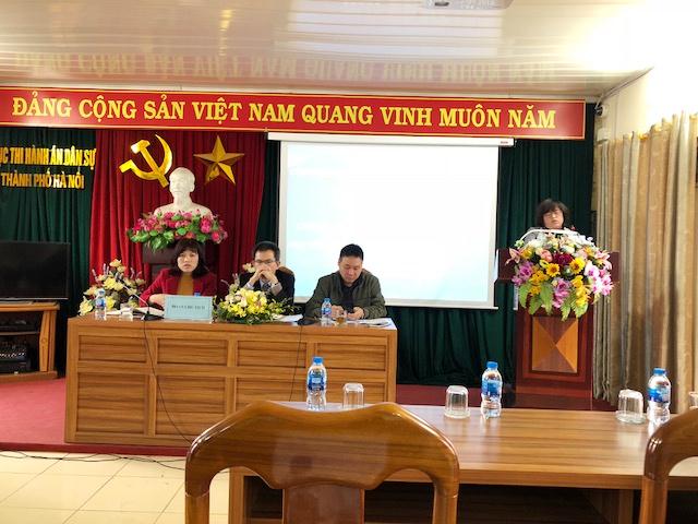 Dưới sự điều hành của Đoàn chủ tịch, Hội nghị một số cán bộ công chức đại điện cho các phòng ban tại Cục đã lên trình bày các bản tham luận với nội dung: Cán bộ, công chức cơ quan tiếp tục phát huy sức sáng tạo, nâng cao năng lực công tác, chất lượng hoạt động nhằm góp phần đưa phong trào của cơ quan đạt kết quả tốt nhất trong năm 2019. Tiếp đó, Hội nghị tiến hành việc bầu mới Ban thanh tra nhân dân, sau khi kiểm phiếu, kết quả như sau: Các đồng chí Nguyễn Thu Nga, Lê Quang Chuyển, Chu Thị Ngọc, Giang Văn Năm, Phùng Thị Loan trúng cử là thành viên Ban Thanh tra nhân dân Cục thi hành án dân sự thành phố Hà Nội nhiệm kỳ 2019- 20121.