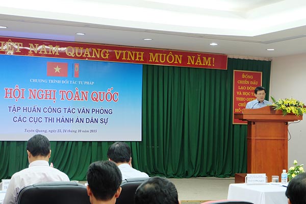 Trong hai ngày 23, 24/10/2015, tại tỉnh Tuyên Quang, Tổng cục Thi hành án dân sự đã tổ chức Hội nghị toàn quốc tập huấn công tác văn phòng đối với Chánh Văn phòng các Cục Thi hành án dân sự các tỉnh, thành phố trực thuộc Trung ương. Thứ trưởng Bộ Tư pháp Lê Thành Long đã đến dự và phát biểu khai mạc, chỉ đạo Hội nghị. Cùng dự Hội nghị có Chánh Văn phòng Bộ Tư pháp Trần Tiến Dũng, Cục trưởng Cục Báo chí Bộ Thông tin và Truyền thông Hoàng Hữu Lượng, Nguyên Thứ trưởng Bộ Nội vụ Văn Tất Thu và Phó Tổng cục trưởng Tổng cục Thi hành án dân sự Mai Lương Khôi.