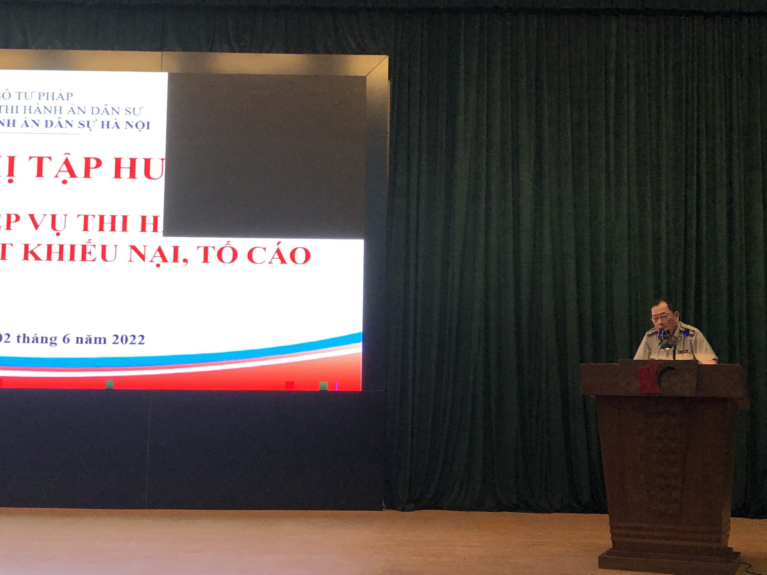 Thực hiện Kế hoạch tổ chức Hội nghị tập huấn nghiệp vụ thi hành án dân sự được ban hành theo Quyết định số 101/QĐ-CTHADS ngày 06/5/2022 của Cục trưởng Cục Thi hành án dân sự thành phố Hà Nội, ngày 02/6/2022, Cục Thi hành án dân sự thành phố Hà Nội tổ chức Hội nghị tập huấn chuyên sâu nghiệp vụ thi hành án dân sự, hành chính và giải quyết khiếu nại, tố cáo năm 2022 cho đội ngũ các Chấp hành viên, Thẩm tra viên, Thư ký thi hành án thuộc các cơ quan Thi hành án dân sự thành phố Hà Nội. Đồng chí Phạm Văn Dũng - Cục trưởng, chủ trì Hội nghị, tham dự lớp tập huấn có 388 đồng chí gồm Lãnh đạo Cục, Lãnh đạo các phòng chuyên môn thuộc Cục, Lãnh đạo Chi cục Thi hành án dân sự các quận, huyện, thị xã trực thuộc Cục và toàn thể đồng chí là Chấp hành viên, Thẩm tra viên, Thư ký thi hành án thuộc các cơ quan thi hành án dân sự trên địa bàn thành phố Hà Nội.