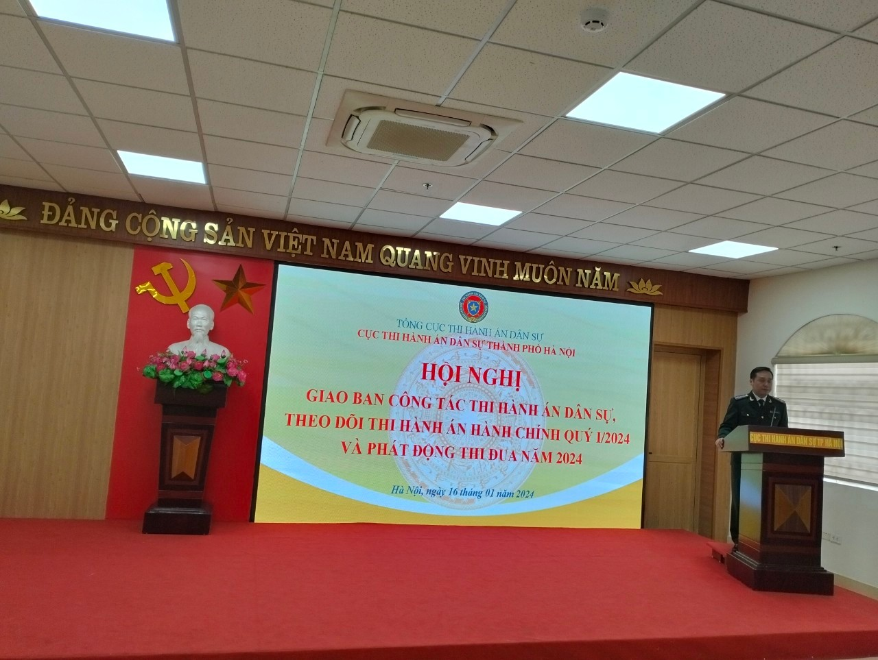 Sáng ngày 16/01/2024, Cục Thi hành án dân sự (THADS) thành phố Hà Nội tổ chức Hội nghị giao ban công tác THADS, theo dõi THAHC Quý I/2024 và tổ chức phát động thi đua năm 2024.