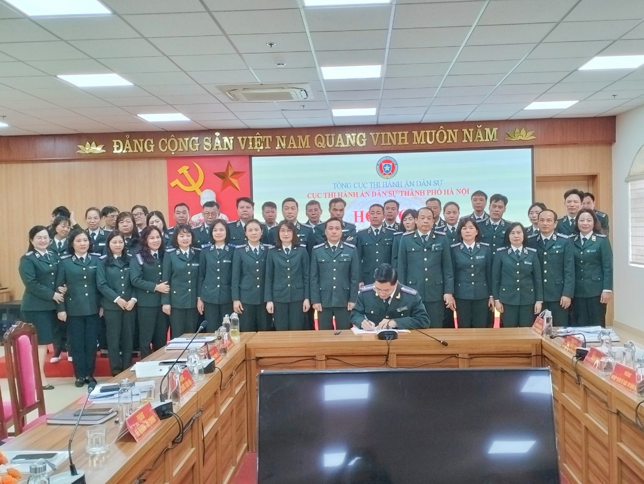Ảnh: Lãnh đạo Cục, Trưởng các Phòng chuyên môn, Chi cục trưởng Chi cục THADS quận, huyện, thị xã trực thuộc ký giao ước thi đua năm 2024