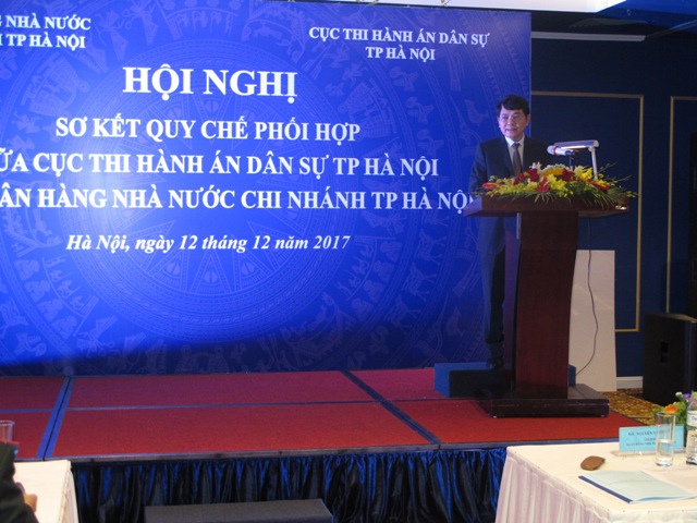 Chiều ngày 12/12/2017, Cục Thi hành án dân sự thành phố (THADS) Hà Nội và Ngân hàng Nhà nước – Chi nhánh Hà Nội đã tổ chức Hội nghị Sơ kết 02 năm thực hiện Quy chế phối hợp số 1133/QCLN/NHNNHN-CTHADS ngày 17/8/2015 về phối hợp trong công tác thi hành án dân sự giữa hai cơ quan.