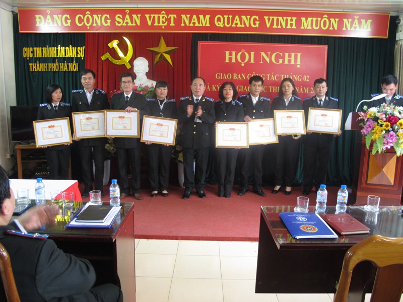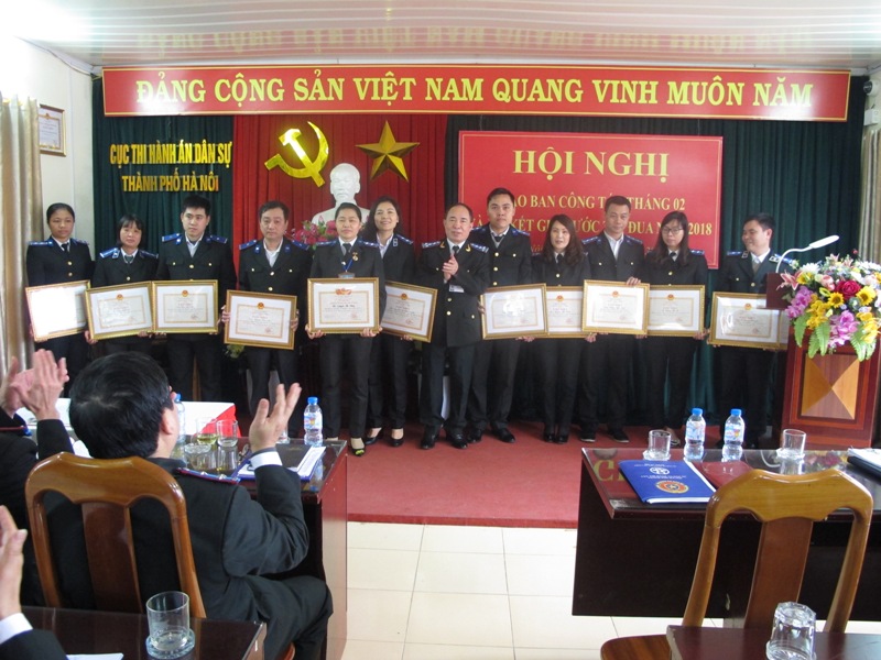 Sáng ngày 26/02/2018, Cục Thi hành án dân sự (THADS) thành phố Hà Nội tổ chức Hội nghị giao ban công tác THADS tháng 2 và ký kết giao ước thi đua năm 2018. Đồng chí Lê Quang Tiến, Cục trưởng Cục THADS Thành phố chủ trì Hội nghị, tham dự Hội nghị có các đồng chí Lãnh đạo Cục, Lãnh đạo các Phòng chuyên môn thuộc Cục, Lãnh đạo các Chi cục THADS quận, huyện, thị xã trực thuộc Thành phố.