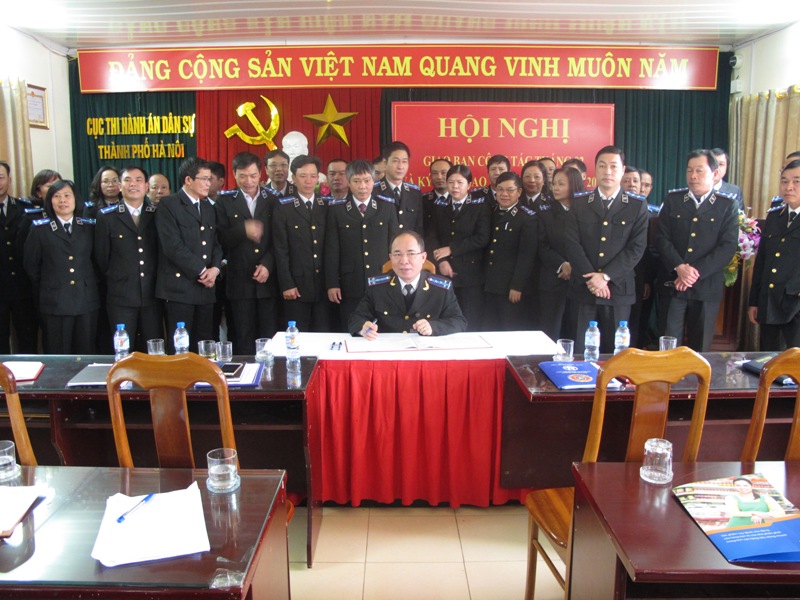 Cục Thi hành án dân sự thành phố Hà Nội tổ chức Hội nghị giao ban tháng 02 và ký kết giao ước thi đua năm 2018
