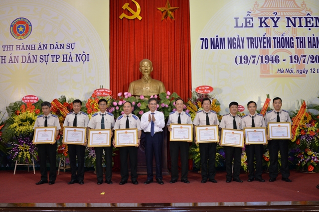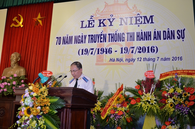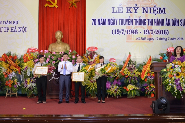 Sáng 12/7/2016, Cục Thi hành án dân sự thành phố Hà Nội long trọng tổ chức Lễ kỷ niệm 70 năm Ngày Truyền thống Thi hành án dân sự. Tới dự, về phía Bộ Tư pháp có: đồng chí Lê Thành Long - Ủy viên Trung ương Đảng, Bộ Trưởng Bộ Tư pháp; đồng chí Hoàng Sỹ Thành - Tổng cục trưởng Tổng cục Thi hành án dân sự. Đại biểu thành phố Hà Nội có đồng chí: Lê Hồng Sơn - Phó Chủ tịch UBND thành phố Hà Nội, Trưởng ban Chỉ đạo THADS thành phố, đồng chí Nguyễn Quang Huy - Ủy viên Ban thường vụ Thành ủy, Trưởng Ban Nội chính Thành ủy Hà Nội, Phó Trưởng Ban thường trực Ban Chỉ đạo cải cách tư pháp thành phố; đại diện Lãnh đạo Cục THA Bộ Quốc phòng; các đồng chí đại diện Sở, Ban, Ngành thành phố. Các đồng chí thành viên Ban Chỉ đạo thi hành án dân sự Thành phố; Trưởng Ban Chỉ đạo THADS quận, huyện, thị xã; Lãnh đạo Đảng ủy Khối các cơ quan Thành phố; Lãnh đạo các cơ quan thuộc Cụm thi đua số 11 Thành phố: Sở Tư pháp, Công an, Tòa án nhân dân, Viện Kiểm sát nhân dân, Sở Cảnh sát PCCC và Bộ Tư lệnh Thủ đô....