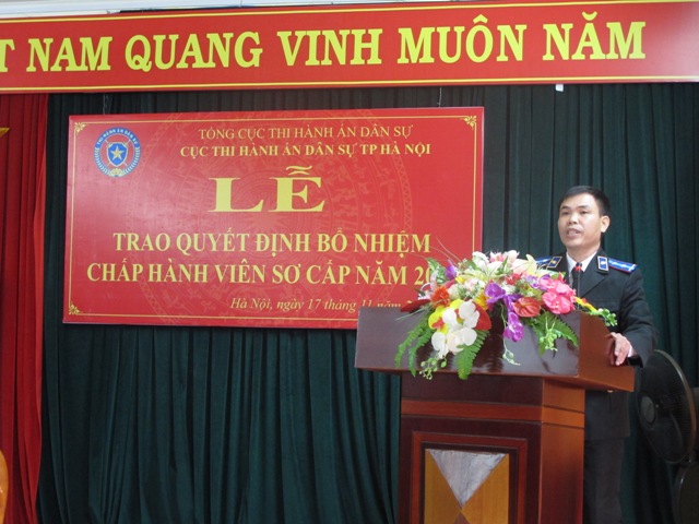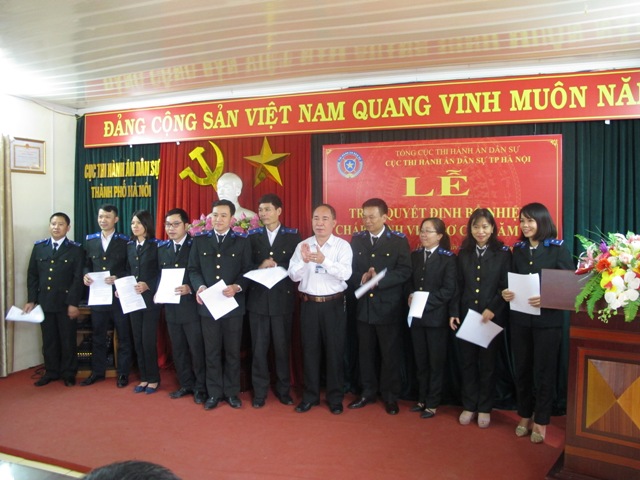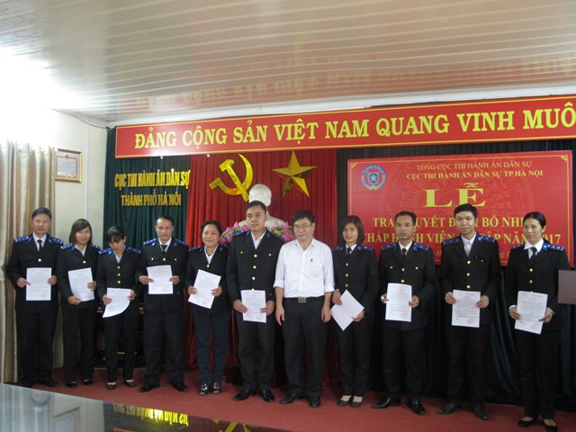 Ngày 17 tháng 11 năm 2017, Cục Thi hành án dân sự thành phố Hà Nội tổ chức Lễ trao Quyết định bổ nhiệm Chấp hành viên sơ cấp đối với 50 đồng chí trúng tuyển kỳ thi tuyển Chấp hành viên sơ cấp năm 2017 và được Bộ trưởng Bộ Tư pháp quyết định bổ nhiệm Chấp hành viên sơ cấp.