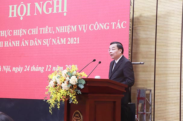 Chiều 24/12, UBND TP.Hà Nội đã tổ chức Hội nghị triển khai thực hiện chỉ tiêu, nhiệm vụ công tác thi hành án dân sự (THADS) năm 2021. Đồng chí Lê Thành Long, Ủy viên Trung ương Đảng, Bộ trưởng Bộ Tư pháp và đồng chí Chu Ngọc Anh, Ủy viên Trung ương Đảng, Phó Bí thư Thành ủy, Chủ tịch UBND TP.Hà Nội cùng dự và chỉ đạo Hội nghị.