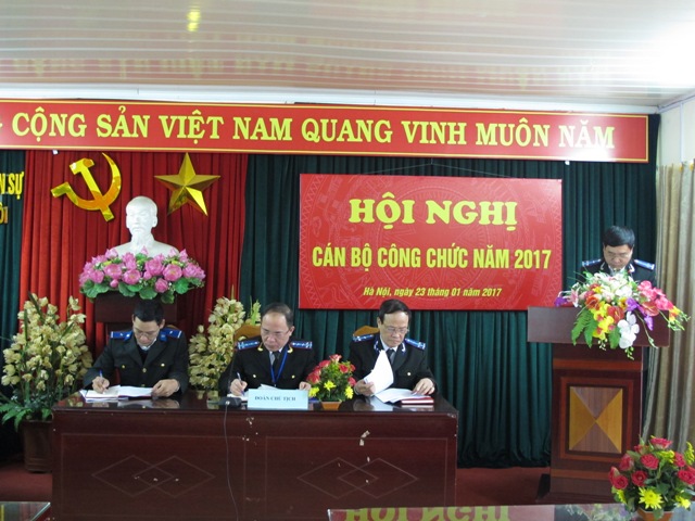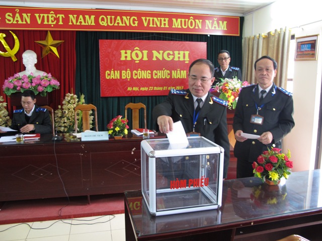 Được sự thống nhất của Đảng uỷ, Lãnh đạo Cục, Ban Chấp hành Công đoàn Cục, sáng ngày 23/01/2017 Cục Thi hành án dân sự Thành phố Hà Nội tổ chức Hội nghị cán bộ, công chức năm 2017 để tổng kết đánh giá tình hình thực hiện nhiệm vụ công tác năm 2016 và phương hướng, nhiệm vụ công tác năm 2017. Tham dự Hội nghị có các đồng chí Lãnh đạo Cục, các phòng chuyên môn và toàn thể cán bộ, công chức, người lao động Cục.
