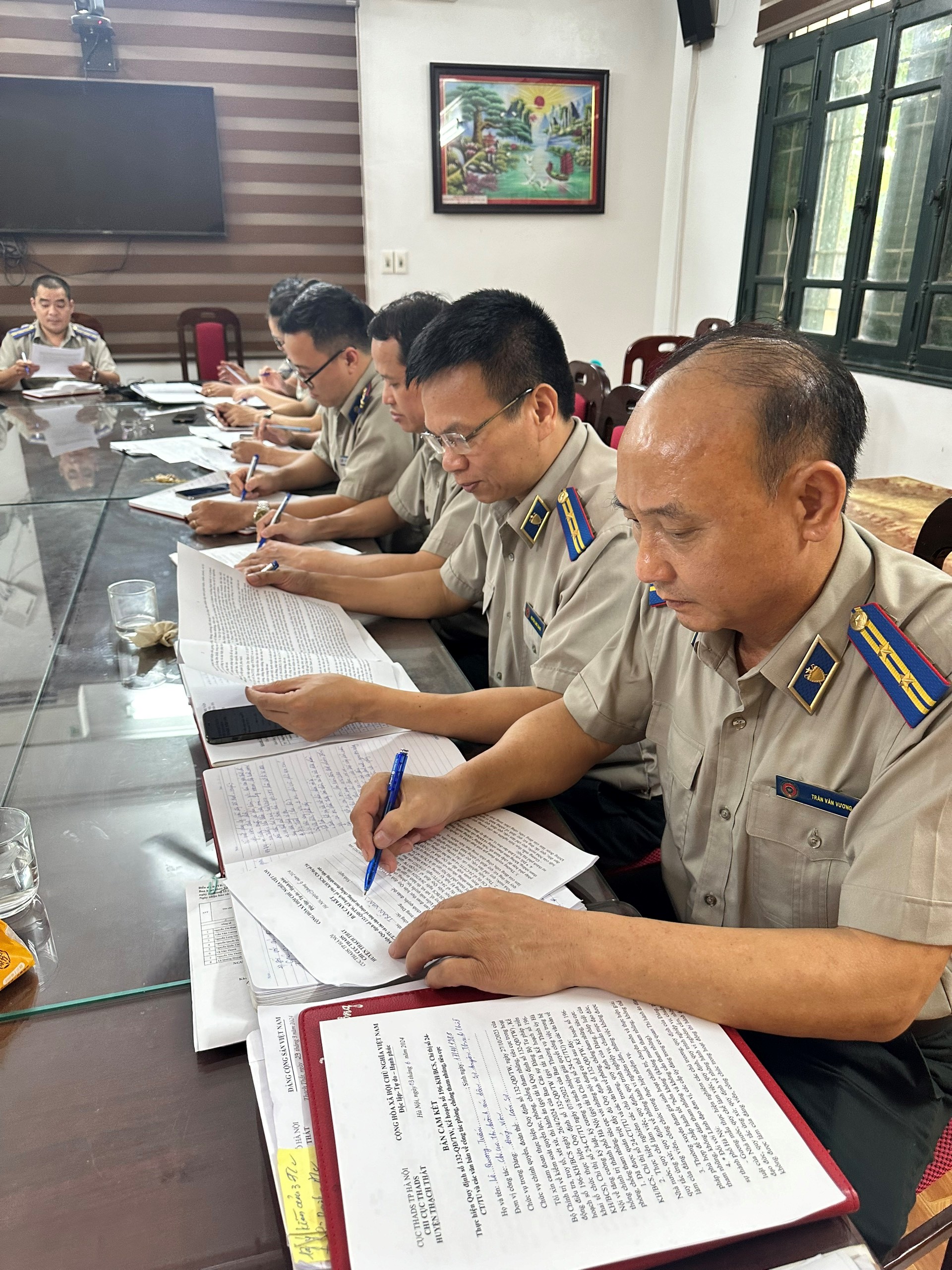 Ngày 05/6/2024, Chi cục Thi hành án dân sự huyện Thạch Thất tổ chức Hội nghị quán triệt, triển khai thực hiện Kế hoạch số 90-KH/ĐU ngày 13/5/2024 của Đảng uỷ Cục THADS thành phố Hà Nội về tổ chức Hội nghị học tập, quán triệt và ký cam kết thực hiện Quy định số 132-QĐ/TW ngày 27/10/2023 của Bộ chính trị; Kế hoạch số 196-KH-BCS ngày 26/4/2024 của Ban cán sự đảng Bộ Tư pháp; Chỉ thị số 24-CT/TU ngày 07/8/2023 của Ban thường vụ Thành uỷ Hà Nội và các văn bản triển khai về công tác phòng chống tham nhũng, tiêu cực.