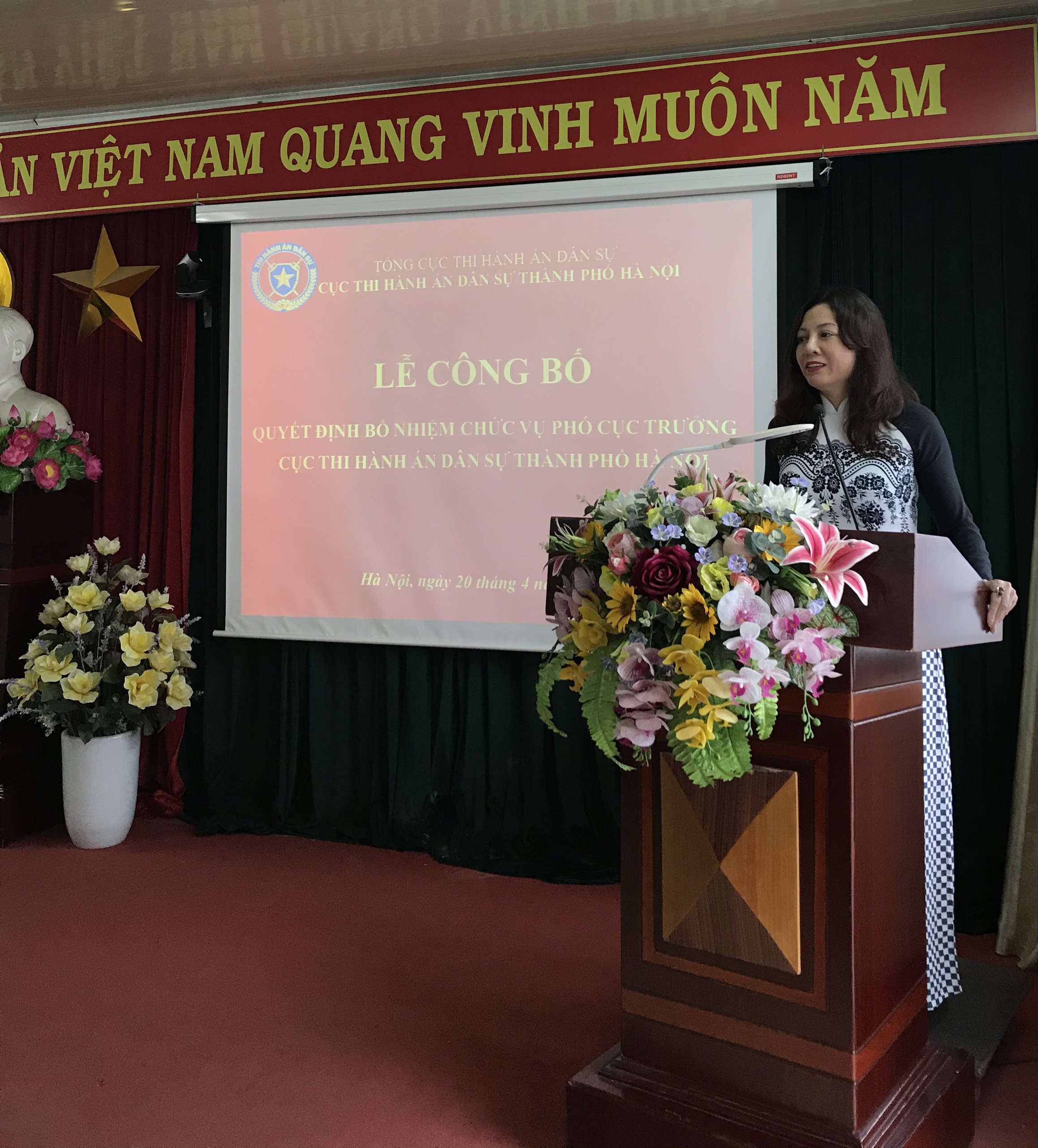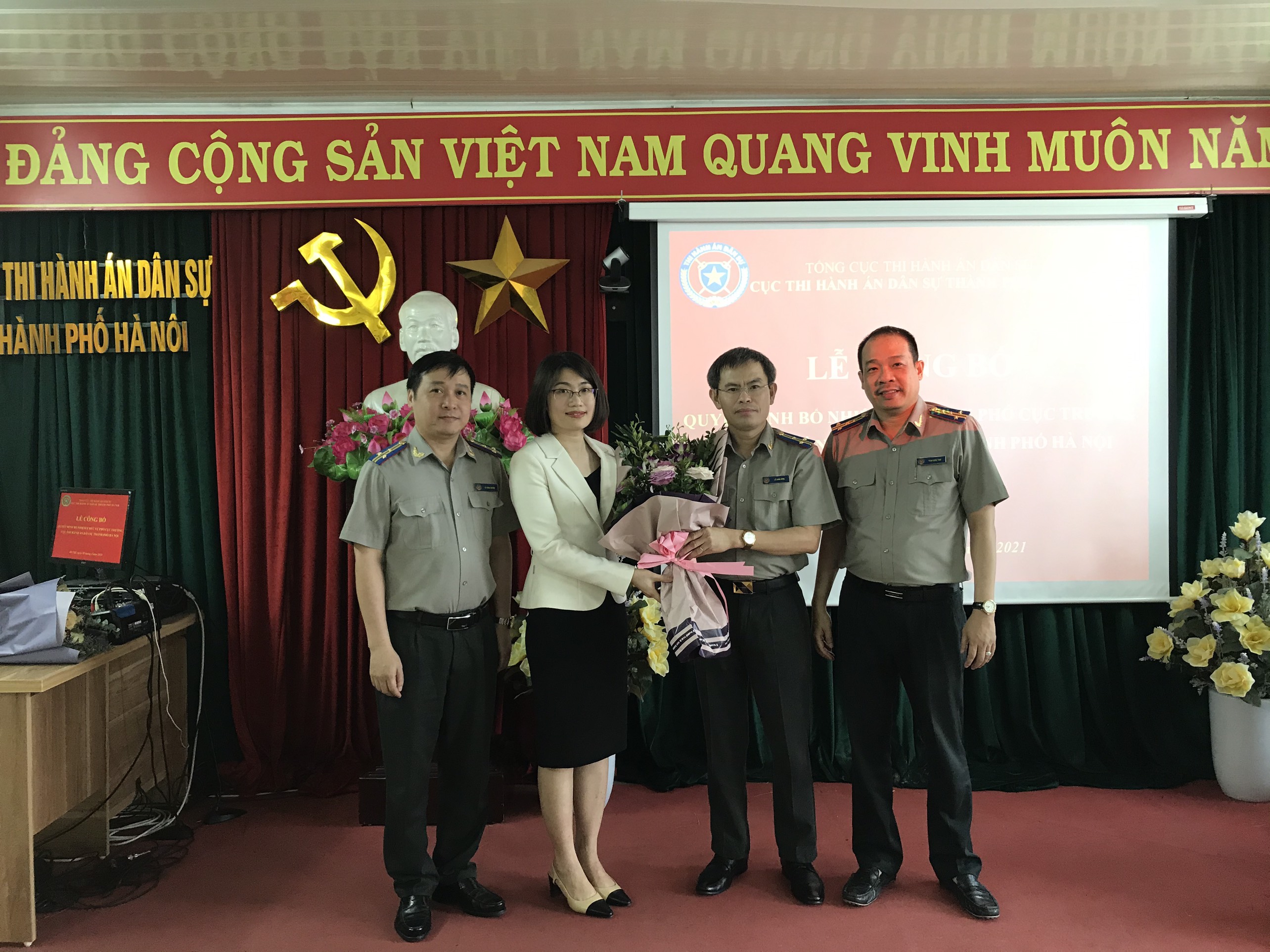 Thực hiện quy trình bổ nhiệm công chức lãnh đạo, ngày 20/4/2021, Tổng cục Thi hành án dân sự, Cục Thi hành án dân sự thành phố Hà Nội long trọng tổ chức Lễ công bố quyết định bổ nhiệm đồng chí Nguyễn Thị Thanh Tú - Chánh Thanh tra Sở Tư pháp thành phố Hà Nội giữ chức vụ Phó Cục trưởng Cục Thi hành án dân sự thành phố Hà Nội.