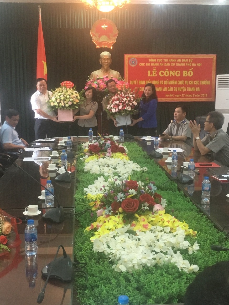 Ngày 22 tháng 8 năm 2019 tại Chi cục Thi hành án dân sự huyện Thanh Oai, Cục Thi hành án dân sự thành phố Hà Nội long trọng tổ chức Lễ công bố Quyết định điều động, bổ nhiệm đồng chí Nguyễn Trung Thành – Trưởng Phòng Kiểm tra, giải quyết khiếu nại, tố cáo giữ chức vụ Chi cục trưởng Chi cục Thi hành án dân sự huyện Thanh Oai. Tham dự Lễ công bố Quyết định có đồng chí Lê Xuân Hồng – Bí thư Đảng ủy, Cục trưởng, đồng chí Lê Quang Chuyển –Trưởng Phòng Tổ chức cán bộ Cục Thi hành án dân sự thành phố Hà Nội; đồng chí Đinh Trường Thọ – Thành ủy viên, Bí thư Huyện ủy Thanh Oai; đồng chí Lê Thị Hà – Phó Bí thư Huyện ủy, Chủ tịch UBND huyện Thanh Oai; đồng chí Nguyễn Phi Hùng – Huyện ủy viên, Phó Chủ tịch HĐND huyện Thanh Oai; đồng chí Nguyễn Huy Diệp, Ủy viên Ban Thường vụ Huyện ủy, Phó Chủ tịch UBND, Trưởng Ban Chỉ đạo Thi hành án dân sự huyện Thanh Oai; đại diện lãnh Tòa án nhân dân, Viện kiểm sát nhân dân và Công an huyện Thanh Oai.