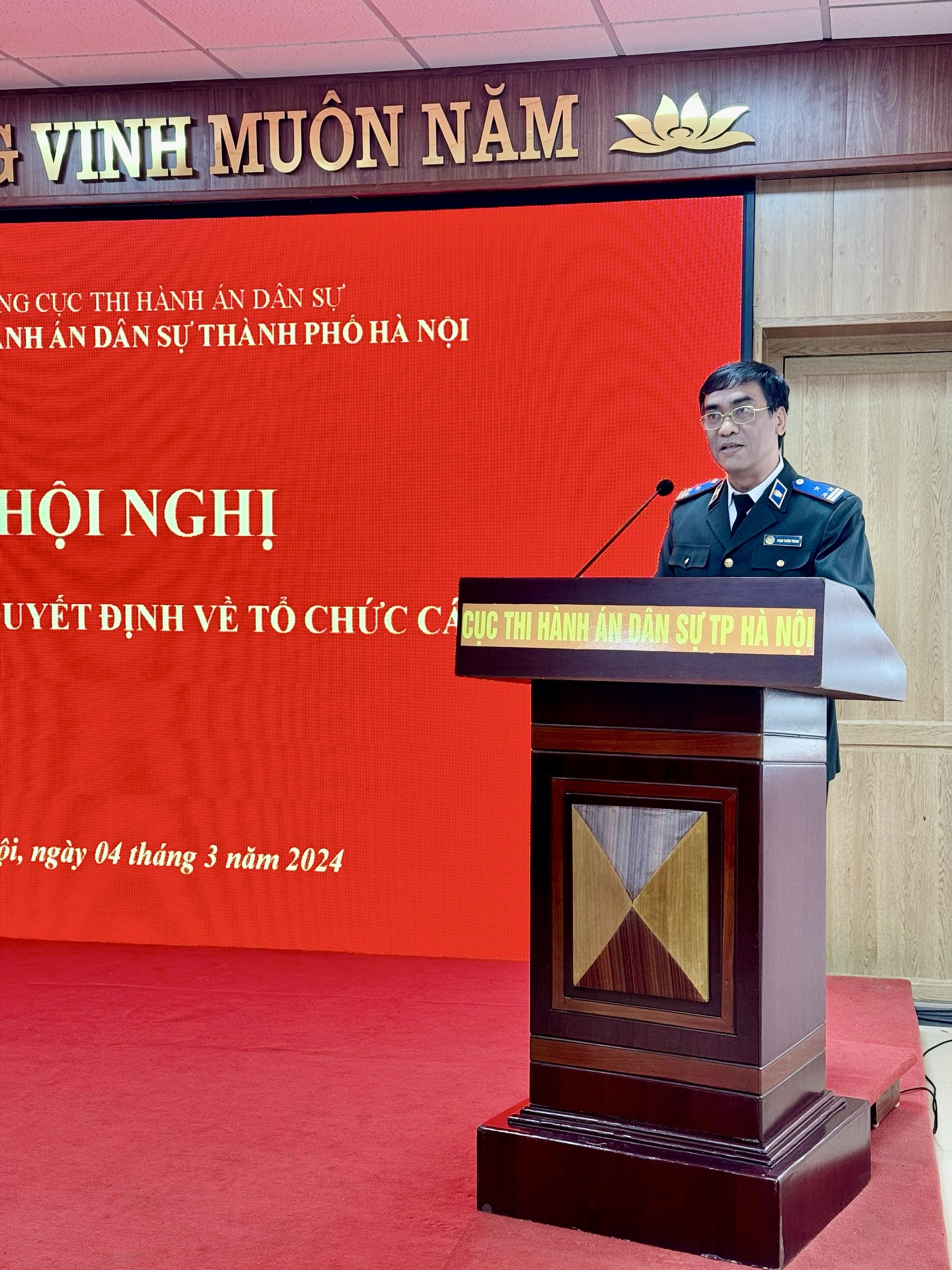 Chiều ngày 04 tháng 03 năm 2024, Cục Thi hành án dân sự (THADS) thành phố Hà Nội đã tổ chức trao các Quyết định biệt phái công chức THADS các tỉnh về Hà Nội của Tổng cục Thi hành án dân sự. Tham dự buổi lễ có đồng chí Phạm Thành Trung – Phó vụ trưởng Vụ Tổ chức cán bộ, Tổng cục THADS; đồng chí Phạm Văn Dũng – Bí thư Đảng ủy, Cục trưởng Cục THADS thành phố Hà Nội; các đồng chí Lãnh đạo Cục THADS thành phố Hà Nội, Lãnh đạo Cục THADS các tỉnh có công chức biệt phái đi; các đồng chí Lãnh đạo các Phòng chuyên môn, các Chi cục THADS nơi có công chức biệt phái đi và đến và các công chức được biệt phái đến các cơ quan THADS thành phố Hà Nội.