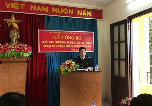 Thay mặt Đảng ủy, tập thể lãnh đạo Cục Thi hành án dân sự thành phố Hà Nội, Đồng chí Lê Quang Tiến - Bí thư Đảng ủy, Cục trưởng ghi nhận những đóng góp của đồng chí Trương Mậu Hùng đối với công tác thi hành án dân sự và phát biểu giao nhiệm vụ đối với đồng chí Phan Mạnh Hùng. Đồng chí nhấn mạnh được bổ nhiệm Chi cục trưởng Chi cục Thi hành án dân sự huyện Chương Mỹ là vinh dự nhưng cũng đồng thời là trách nhiệm lớn lao, hy vọng trên cương vị mới, đồng chí Phan Mạnh Hùng sẽ tiếp tục phát huy hơn nữa phẩm chất chính trị, năng lực chuyên môn nghiệp vụ để đưa Chi cục Thi hành án dân sự huyện Chương Mỹ hoàn thành xuất sắc nhiệm vụ, góp phần xây dựng ngành Thi hành án thủ đô ngày càng vững mạnh và phát triển.