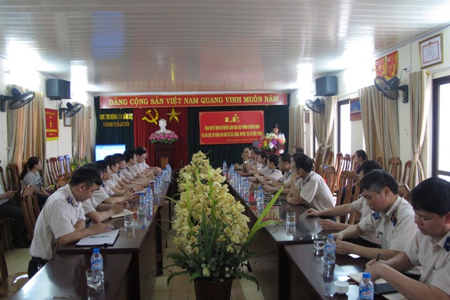 | Đ/c Lê Quang Tiến - Bí Thư Đảng ủy, Cục trưởng phát biểu chúc mừng và giao nhiệm cho các đồng chí được bổ nhiệm |